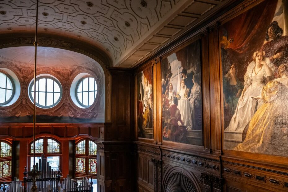 Als die Türen sich öffnen, ist der große Moment da: Nach 92 Jahren konnten gestern Abend die geladenen Gäste in der Villa Seligmann erstmals wieder einen Blick auf drei der fünf Frauenallegorien werfen, die der Maler Ferdinand Wagner 1906 schuf. „Das Hören“, „Das Sehen“ und „Der Geschmack“ sind wieder zuhause. „Die Villa Seligmann hat ihre Sinne zurück“, freute sich der Hausherr der Villa Seligmann Eliah Sakakushev-von Bismarck. Aus diesem Anlass wurde gestern Abend gefeiert.Mehr lesen »Die Musen sind zuhause in der Villa Seligmann