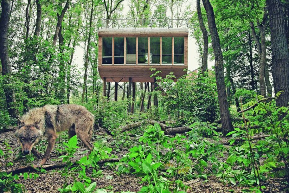 Im Baumhaus-Hotel übernachten und wilde Tiere beobachten – das geht auch in Niedersachsen: mitten im Wolfcenter Dörverden.Mehr lesen »Nachts unter Wölfen