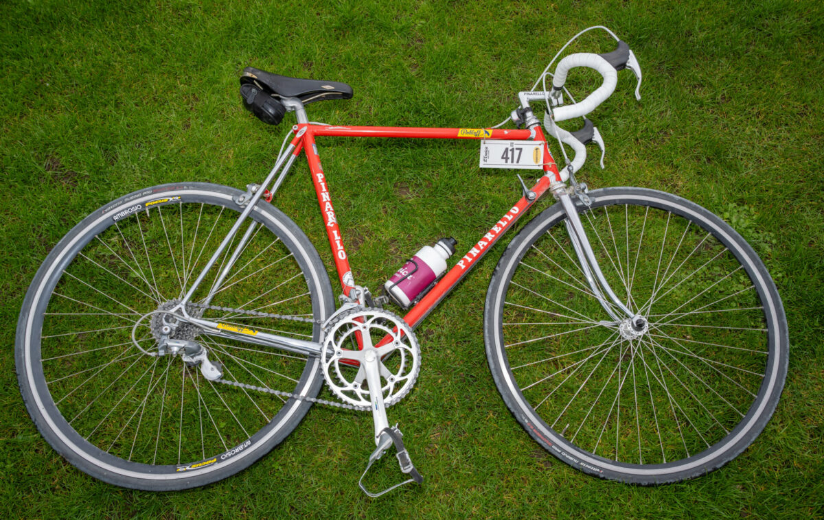 Auch Heike bekommt glänzende Augen, wenn sie auf ihr Pinarello angesprochen wird: „Das Rad hat mal meinem Vater gehört, und ich habe es gemeinsam mit einem Freund – Manfred Galonski, dem ‚Mister Steelbike‘ – wieder instand gesetzt. Jeder, der so ein altes Rennrad fährt, hat eine ganz persönliche Geschichte dazu zu erzählen.“ Besonders stolz ist Heike auf den Staub an ihrem Rad: „Den wasche ich niemals ab, das ist Heldenstaub der Strade Bianche, der weißen Straßen der Toskana. Der ist von der Eroica-Tour 2023!“