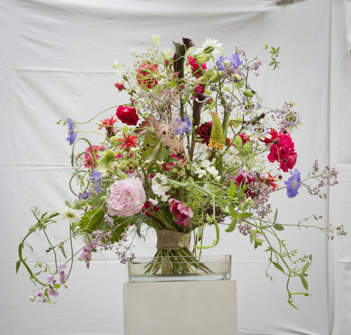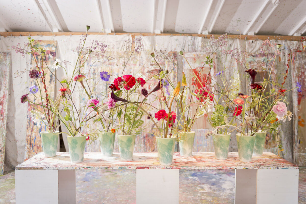 Als Florist, der mehr oder weniger professionell Tische deckt, habe ich natürlich einen Fundus, den nicht jeder hat. Bei mir füllt er ein ganzes Lager und ich kann auf recht viel Kram zugreifen, der sich im Laufe der Jahre angesammelt hat. Einen kleinen Fundus sollte man aber in jedem gut geführten Haus finden. Ein paar Stücke aus Porzellan und ein bisschen mehr aus Glas. Und die Teile brauchen nicht teuer sein, ganz einfache Formen und Größen reichen meistens aus. Es geht ja um die Blumen!
