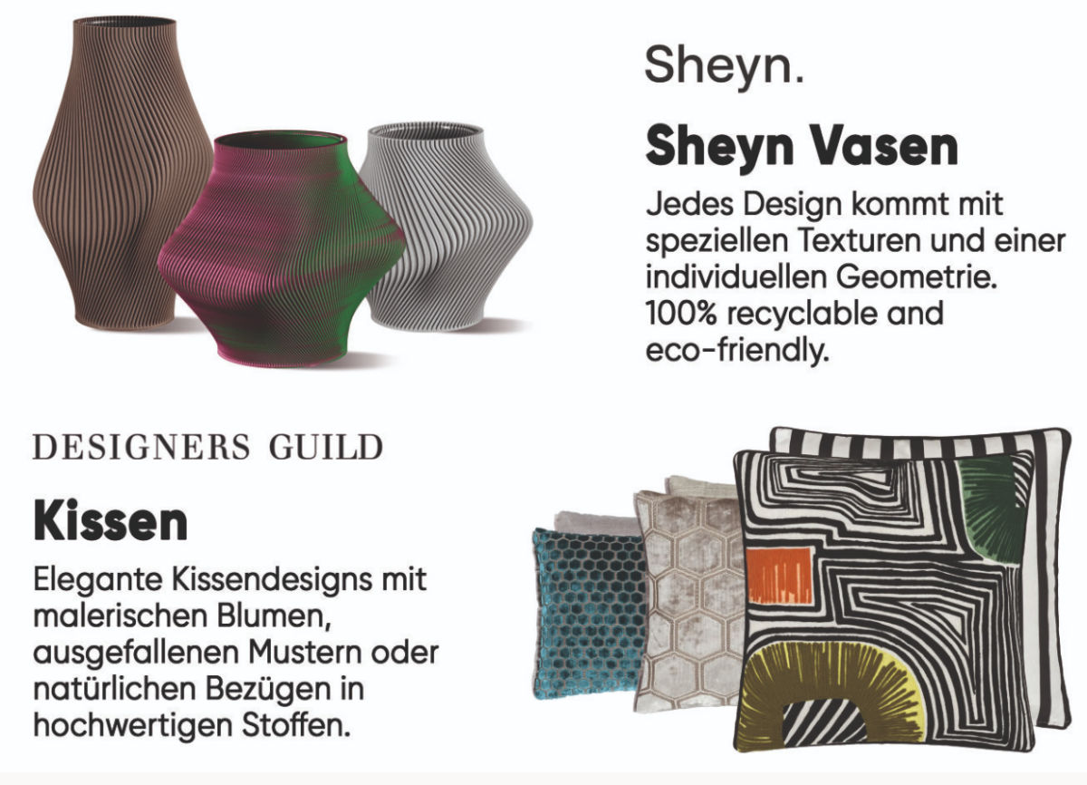 Akzente. Ob farbenfrohe Eleganz mit den Vasen von Sheyn oder weicher Luxus mit den Kissen von Designers