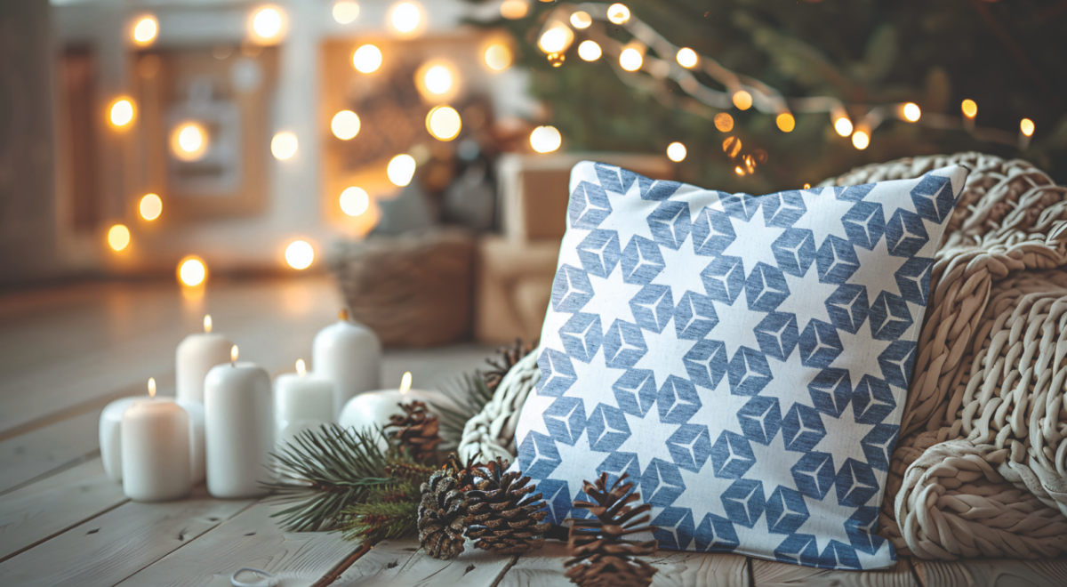 Winterdekoration. Ob als Kissenhülle, Tischläufer, Serviette oder Geschirrtuch – es bringt eine stimmungsvolle,