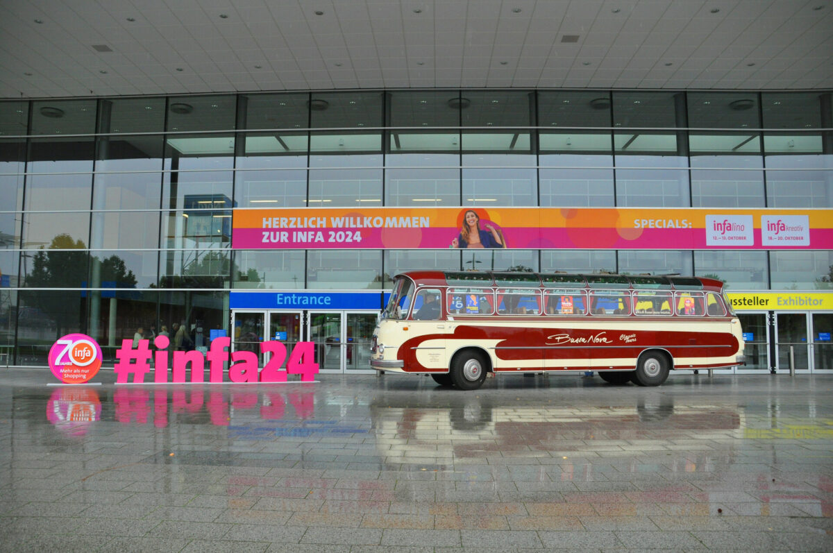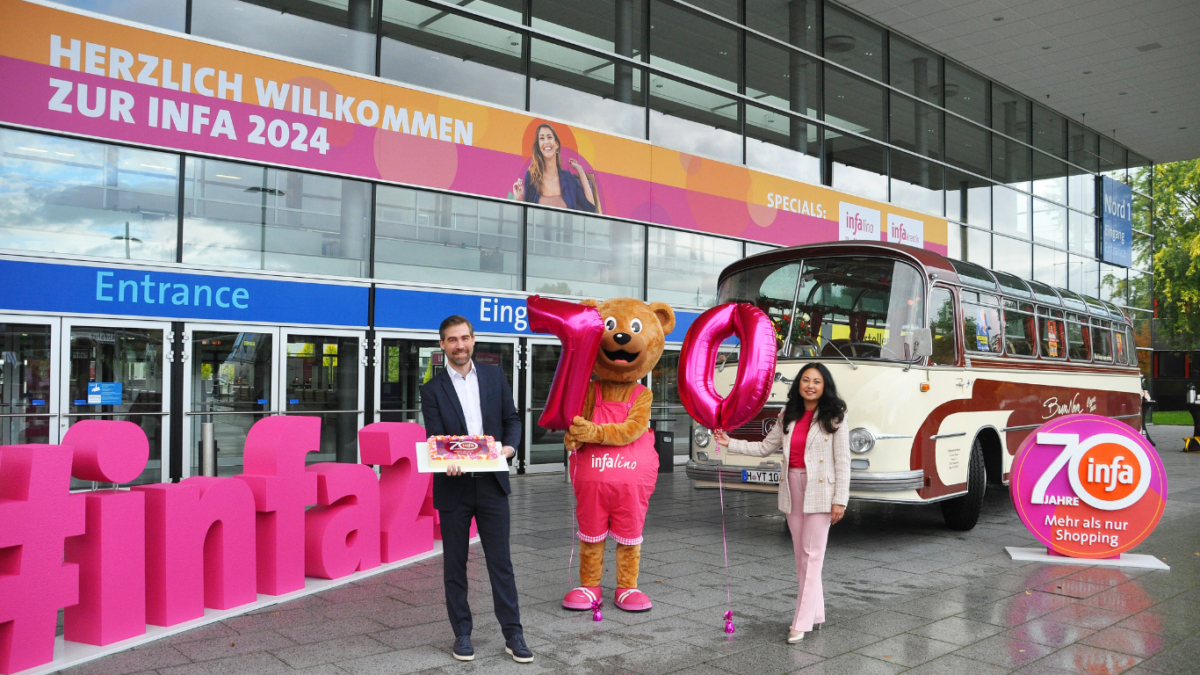 Mit einer kleinen Oldtimerbus-Fahrt zum ersten Veranstaltungsort beim HCC und dem Anschneiden einer Geburtstagstorte feiert Deutschlands schönste Erlebnis -und Einkaufsmesse – die infa – ihren 70. Geburtstag.