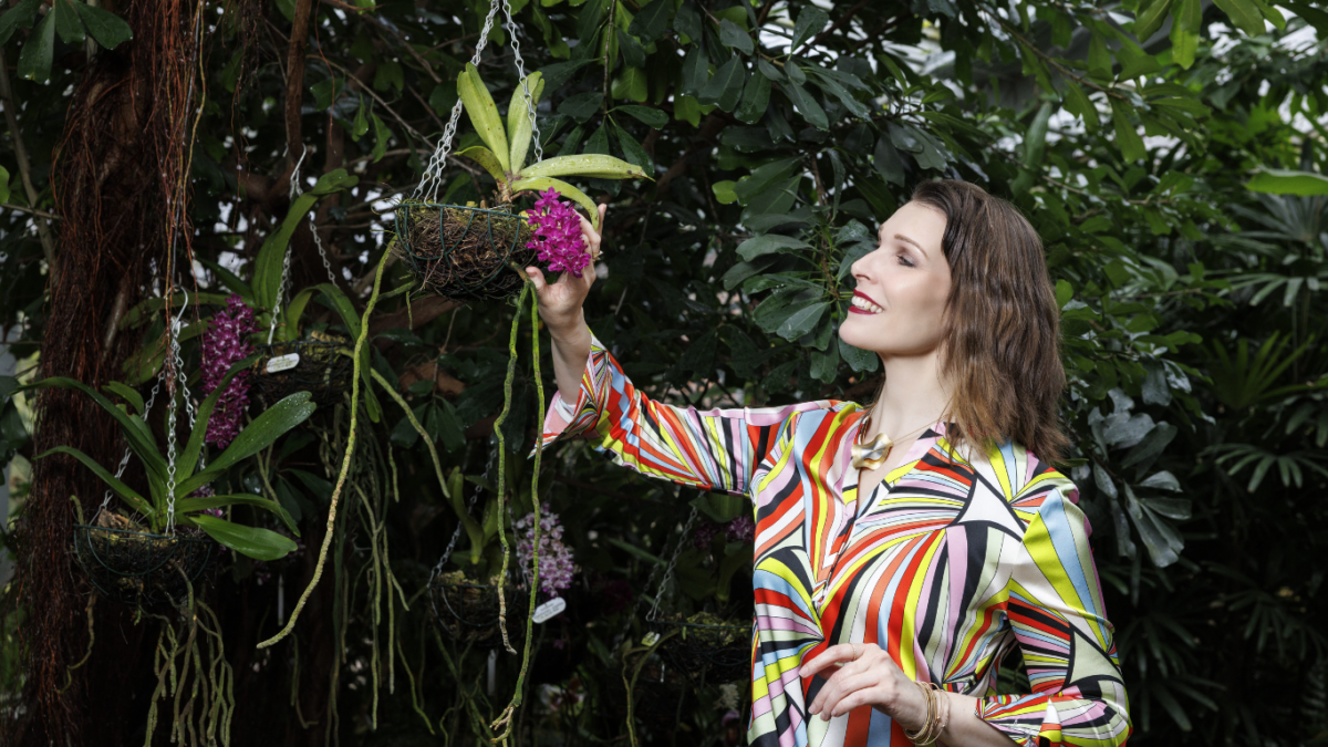 Taschen in bestickter Bastoptik bleiben und bestechen durch raffinierte Verschlüsse. Da neben gibt es auffällige Begleiter in Neon Pink, die man sicherlich nicht vergessen wird, oder elegant in Taubenblau, die perfekt zu Pastells und Nudetönen passen. Und am Abend? Auch da darf es glitzern, muss aber bequem sein. Der Trend geht zu schmalen Maxikleidern, die aber durchaus dinner-tauglich sind: Sie haben Raffungen vor dem Bauch und sind oft aus stretchigem Material, sodass sie während des Essens einfach mitwachsen und ein Food-Bäuchlein kaschieren. Ein weiterer Pluspunkt: Sie können super mit auf Reisen genommen werden, da sie nicht knittern. Sie kommen genauso aus dem Koffer heraus wie hinein. Das gilt für einen weiteren Trend, der bleibt: Maxikleider im Hippielook. Bunt und fröhlich, mit farbigen Paisleymustern machen sie Lust auf den Sommer und freuen sich schon – wie bei unserer Modestrecken-Produktion in den Schauhäusern des Berggartens – darauf, endlich ausgeführt zu werden.