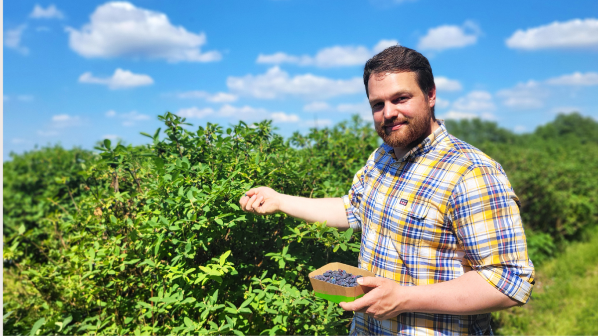 „Die Kamtschatka- oder auch sibirische Heidelbeere stammt von der gleichnamigen Halbinsel, aus dem östlichsten Zipfel Russlands. Sie ist eine ganz besondere Frucht“, lobt Philipp Hertell den wechselnd herb-süßen Geschmack der dunkelblauen Beere, die eigentlich rot ist. Dies sieht man jedoch erst beim Verzehr oder bei der Weiterverarbeitung der trendigen Frucht in experimenteller Küche oder für Marmelade.