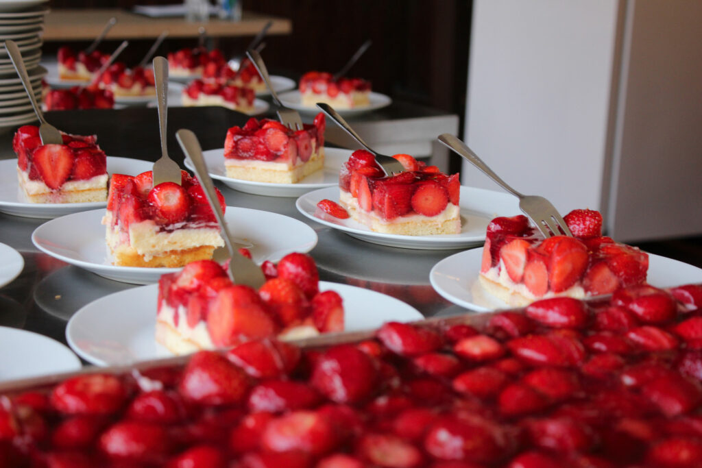 Saft, Milch, Eis, Marmelade und Waffeln. Der Liebling der Gäste ist der klassische Erdbeerkuchen mit Sahne. Der Kuchen kommt aus einer Bäckerei aus Ihme-Roloven. Neben Erdbeerprodukten bietet das Café Himbeeren und Himbeerkuchen an. Auch für die kleinen Gäste hat das Erdbeer-Café einiges zu bieten. Im hinteren Bereich des Cafés gibt es ein Kinderland mit einer Strohburg, neuer Wasserpumpe und vielen Spielmöglichkeiten. Im Juli öffnet das Maislabyrinth. Neben dem Café betreibt Familie Fricke seit über 38 Jahren einen Acker- und Pflückbetrieb. Das Erdbeer-Café hat während der Erdbeersaison von Mitte Mai bis Ende Juli geöffnet. Je nach Wetterlage kann sich die Saison auch verkürzen oder verlängern.