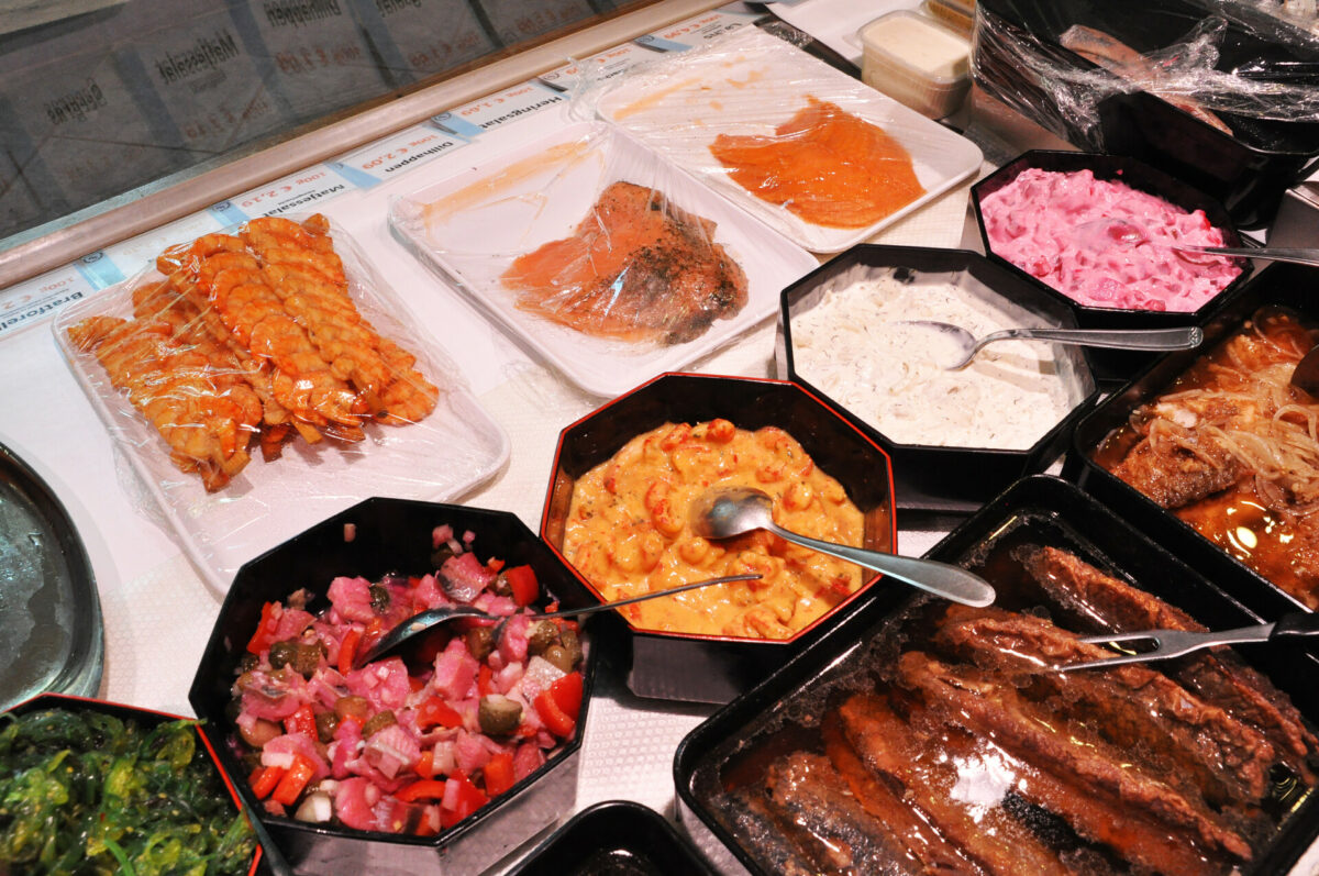 Im Hofladen gibt es diese dann – und noch vieles mehr – zu kaufen: Frischfisch von A, wie Aal, über Gold-, Lachs- und Regenbogenforelle, bis hin zu Karpfen, Saibling und Z, wie Zander. Dazu diverse Feinkostsalate und Soßen für Selbstabholer oder aber, mit frisch gestalteten Fischplatten, als Partyservice vom Forellenhof.