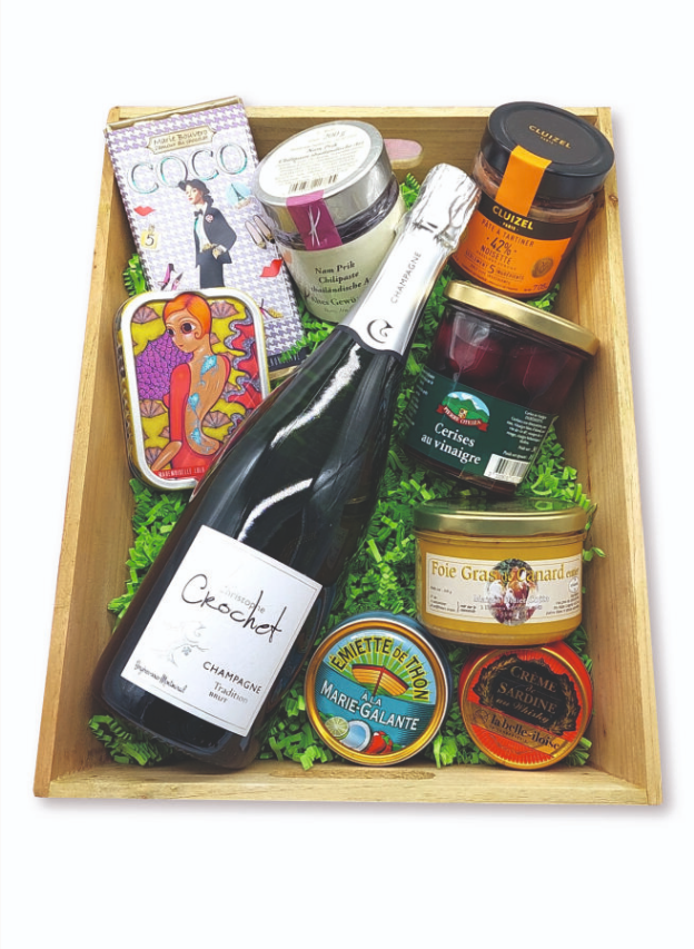 Leckereien aus kleinen französischen Manufakturen und Winzerchampagner von Christophe Crochet. Das nennen wir Schenken wie Gott in Frankreich!