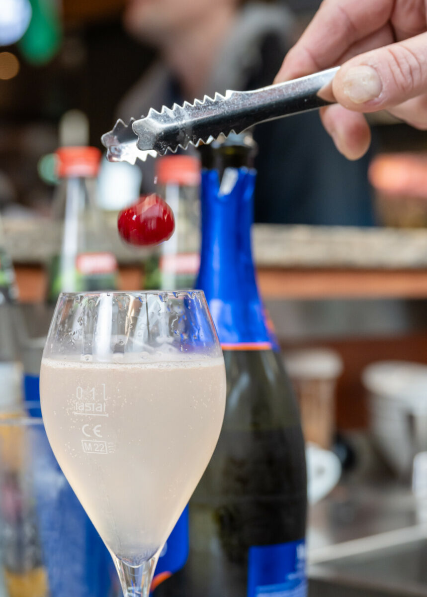 Cocktailkirsche ist ein witziger Farbtupfer im Glas. Der Beweis, dass leckere