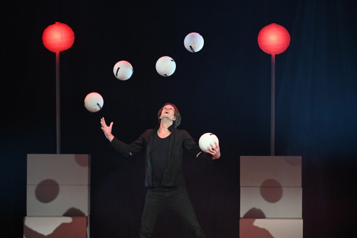 Mit Physik kennt sich auch Andreas Wessels besonders gut aus. Wenn er seine fußballgroßen Bälle durch die Luft wirbeln lässt, ist es das eine. Das andere aber ist, wenn er ein Streichholz so durch seine Beine hinter dem Rücken hochwirft, mit dem Mund auffängt, um sich damit die dortige Zigarette anzuzünden. Das ist klein, fein und sensationell. Auch wenn man diese Nummer vielleicht schon einmal gesehen haben sollte – man kann immer wieder darüber staunen.