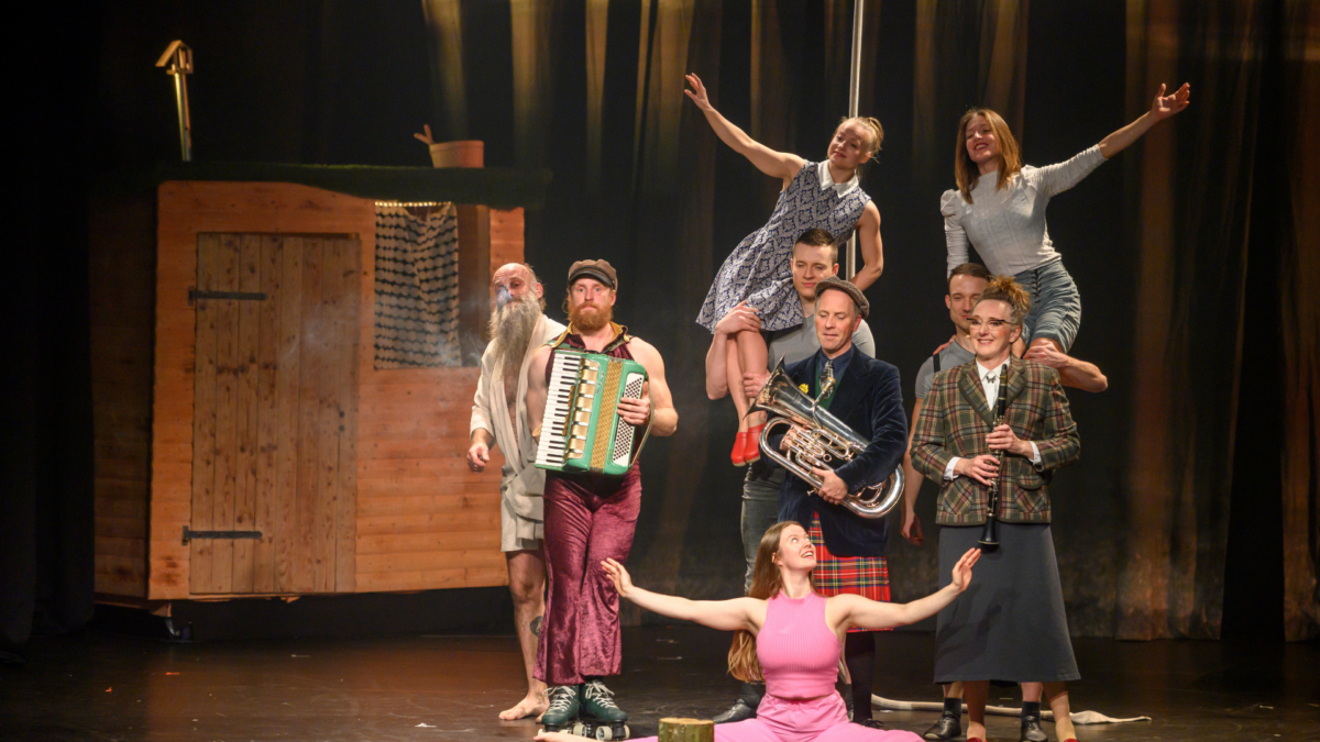 Das Duo Brothers Zapata hingegen sind schon von Natur aus aufeinander angewiesen. Brian und Johann Zapata geben einander Schwung. Hinter dem Pärchen aus der Sauna verbergen sich Matias Salmenaho und Erika Ahola. Die beiden stammen aus Finnland. Dort fing sie bereits mit fünf Jahren an zu turnen und entfloh den strengen Wettkampfregeln, indem sie sich mit 16 der Zirkuswelt zuwandte. Matias jongliert nicht nur und verkörpert sehr authentisch den Naturburschen in der Wilderness, er trägt seine Partnerin auch auf Händen – wenn er sich mit ihr nicht gerade im Kopfstand-Wassereimer-Wetttauchen misst. Ebenfalls aus Finnland stammt Sirje Tolonen. Sie spielt mit Emotionen wie mit ihren Reifen: vom zarten Mädchen hin zur Rockröhre, bei ihr ist zwischen sanften Klängen und Heavy Metal alles drin. Das gilt auch für Perry Rose. Der passionierte Musiker ist für den Sound der Show zuständig. Irischer Folk oder Hard Rock – Perry kann’s. Und manchmal sollte man sich den Augenblick gönnen, ihm während der einzelnen Acts, die er begleitet, ins Gesicht zu schauen. Es ist wunderbar zu sehen, wie er selbst in dieser Wilderness dem poetisch-professionellen und auch immer wundersam skurrilen Treiben der anderen Waldbewohner begeistert und erstaunt zugleich zusieht.