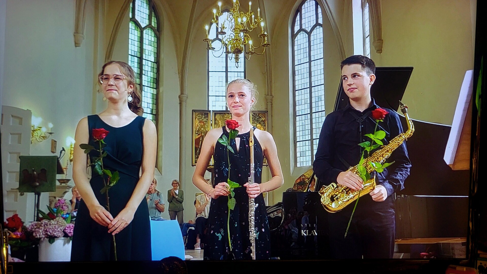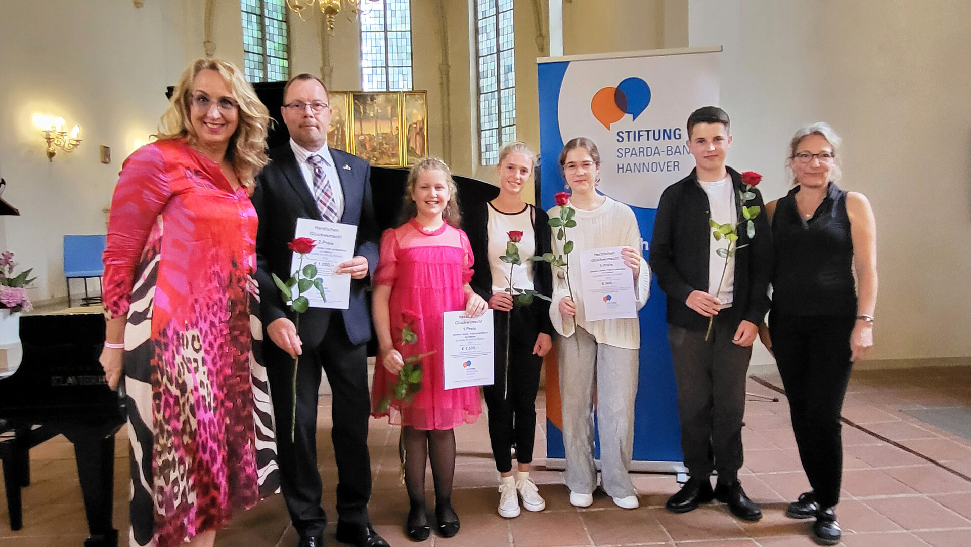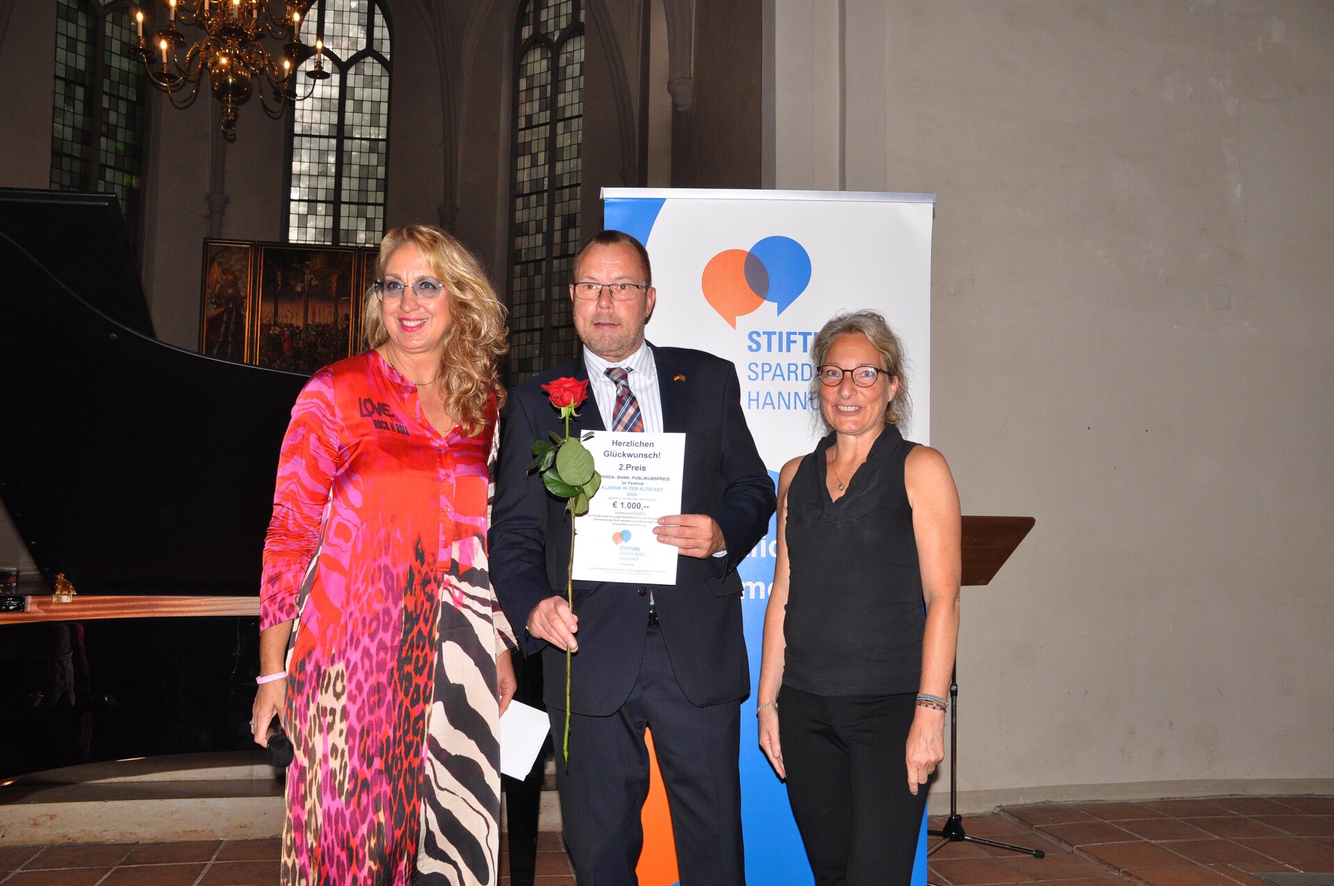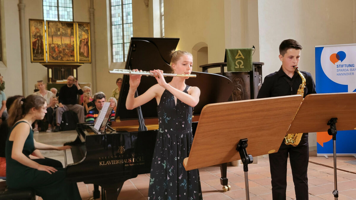 Ariane Rehbein von der Sparda-Bank Hannover gratulierte der jungen Musikerin und überreichte ihr den mit 1500 Euro dotierten Preis. Für das terminlich verhinderte Gesangstrio Janice Jeandre Caroline van Rooy (Sopran), Gabriella Guilfoil (Mezzosopran) und Simonas Poška (Klavier) nahm stellvertretend Andreas Konietschke, Consulate Manager des Honorarkonsulats von Namibia Hannover, den mit 1000 Euro dotierten zweiten Preis entgegen. Als gemeinsame Dritte freuten sich Finja Händel (Querflöte), Jannes Wald (Saxophon) und Nepheli Elsas (Klavier), ebenfalls Frühstudierende des IFF Hannover, abschließend über 500 Euro Preisgeld. Und auch die Klassik-Zuhörer konnten gewinnen: Die Privatbrauerei Herrenhausen verloste drei Preise unter allen, die einen Stimmzettel abgegeben hatten.