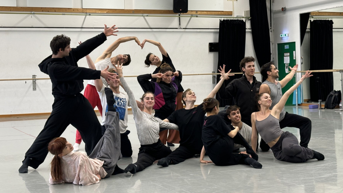 Die Tänzer machen Luftsprünge, sie winken fröhlich dem imaginären Publikum. Das alles tun sie in einem auf dem Boden markierten Bereich – er hat exakt die Maße der großen Bühne im Hauptsaal der Oper. Klassische Tanzschritte wie aus dem Walzer und moderne Bewegungen greifen ineinander und wechseln sich ab.