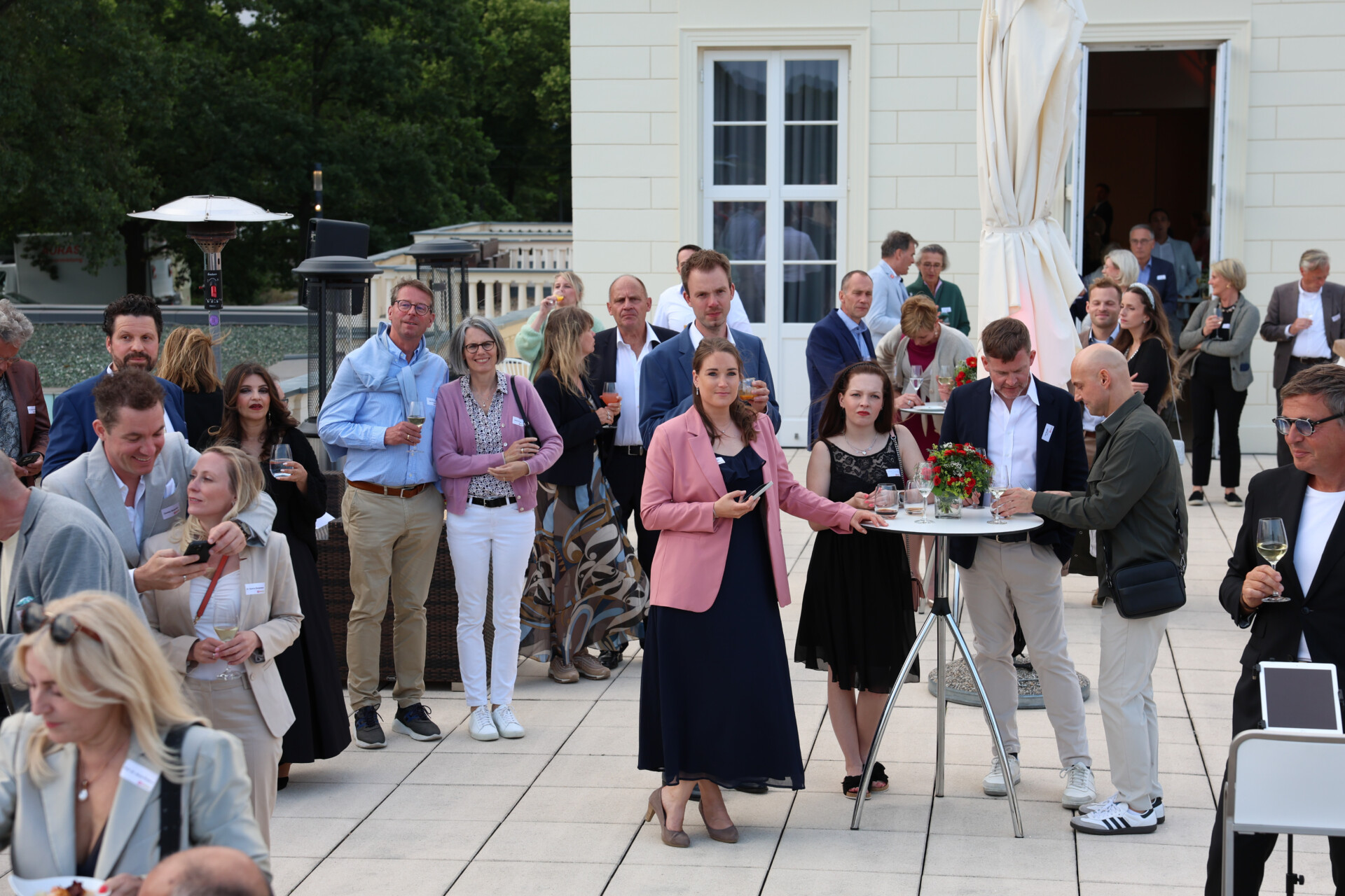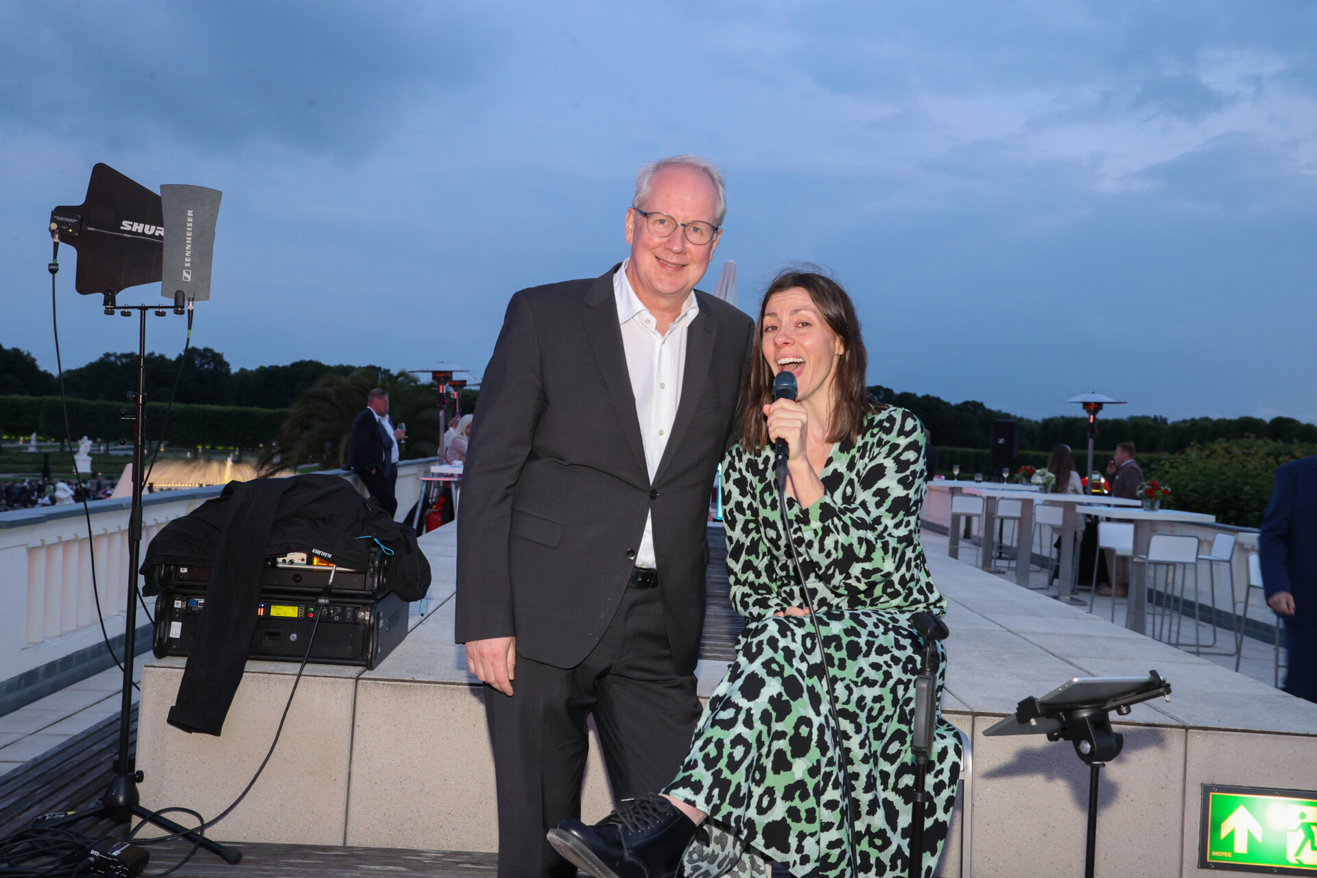 Neben Sandra Quadflieg ließen sich auch Menschen der Stadtgesellschaft Hannovers es sich nicht nehmen, zum Fest im Schloss zu kommen. Mit dabei waren auch HMTG-Chef Hans Nolte, IHK-Hauptgeschäftsführerin Maike Bielfeldt, IHK, Ärztekammer-Vorstand Thomas Buck, Eckart Gaude, Geschäftsführer der ZAG, Adrian M. Grandt, Präsident der Chaîne des Rôtisseurs oder auch Jochen Köckler, Chef der Deutschen