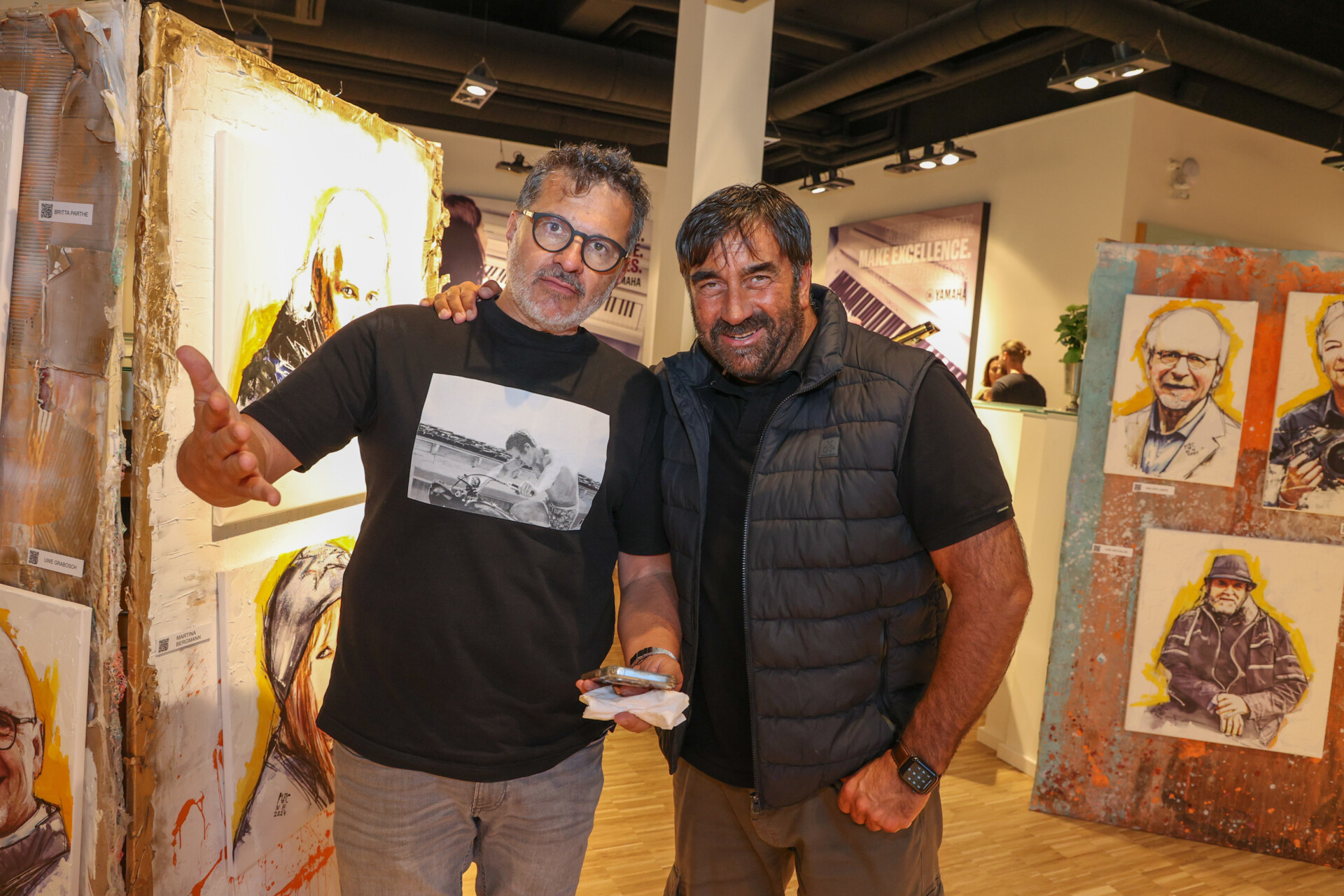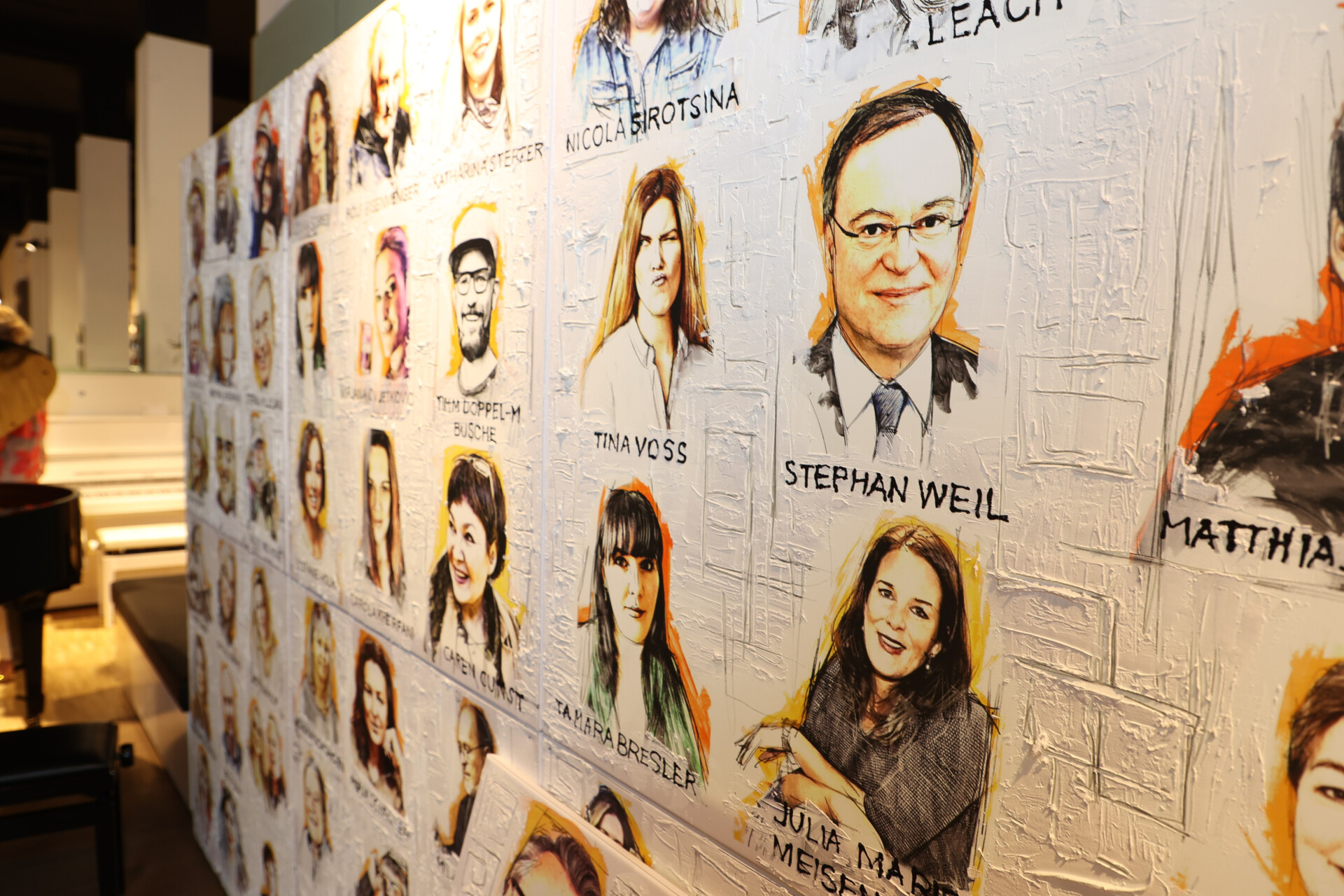 Tue Gutes und rede darüber – genau das haben am Donnerstagabend die Stadtpromis getan. Auf Einladung von Klavierhaus-Döll Chefin Ariane Jablonka und Künstler Mic Strogies waren sie zu einer ganz besonderen Vernissage gekommen. Zugunsten des Straßenmagazins Asphalt, das Obdachlosen eine Hilfe zur Selbsthilfe bietet, hatte Mic Strogies in seiner Reihe „Heroes in Hannover“ neue Gesichter der Stadt porträtiert und gleichzeitig eine Zusammenstellung aller bislang Porträtierten gefertigt. Diese werden jetzt für den guten Zweck gezeigt und verkauft.