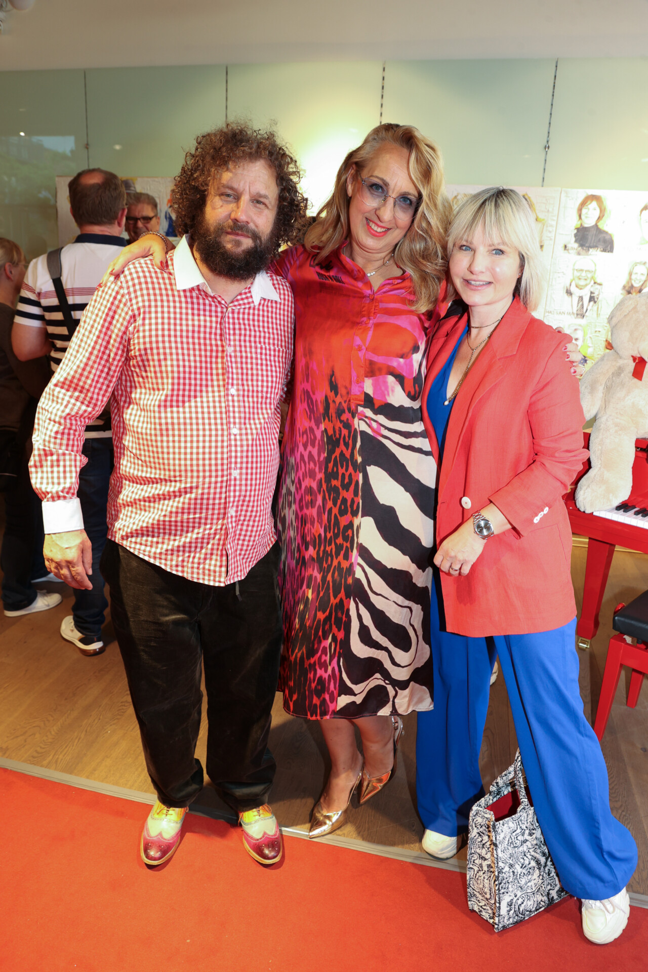 Mindestens genauso groß war die Freude bei der Asphalt-Geschäftsführerin Katharina Sterzer. Sie machte darauf aufmerksam, dass es immer wieder eine große Herausforderung sei, ein Magazin wie Asphalt herauszugeben, die nicht von künstlicher Intelligenz geschrieben werde. Sie betonte auch, dass Asphalt weit mehr als ein Magazin sei. Es gebe zudem soziale Angebote für die Verkäuferinnen und Verkäufern wie Unterstützung bei Arztbesuchen oder auch der Wohnungssuche. Und auch, wer seine letzte Reise angetreten habe, werde nicht einfach verscharrt. Im Ruheforst gebe es einen Baum, um diese Menschen würdig zu beerdigen. Eine derjenigen, die seit 30 Jahren zu Asphalt gehören, war ebenfalls in der Ausstellung zu sehen: Karin Powser, die erst kürzlich verstorben ist. Ihr Porträt stand ihr zur Ehre am Eingang der Ausstellung. Dort war auch eine Zusammenstellung aller Porträts der „Heroes für Hannover“ wie eine Fotowand aufgebaut. Klar, dass es sich die Promis sich nicht nehmen ließen, davor ein Foto zu machen.
