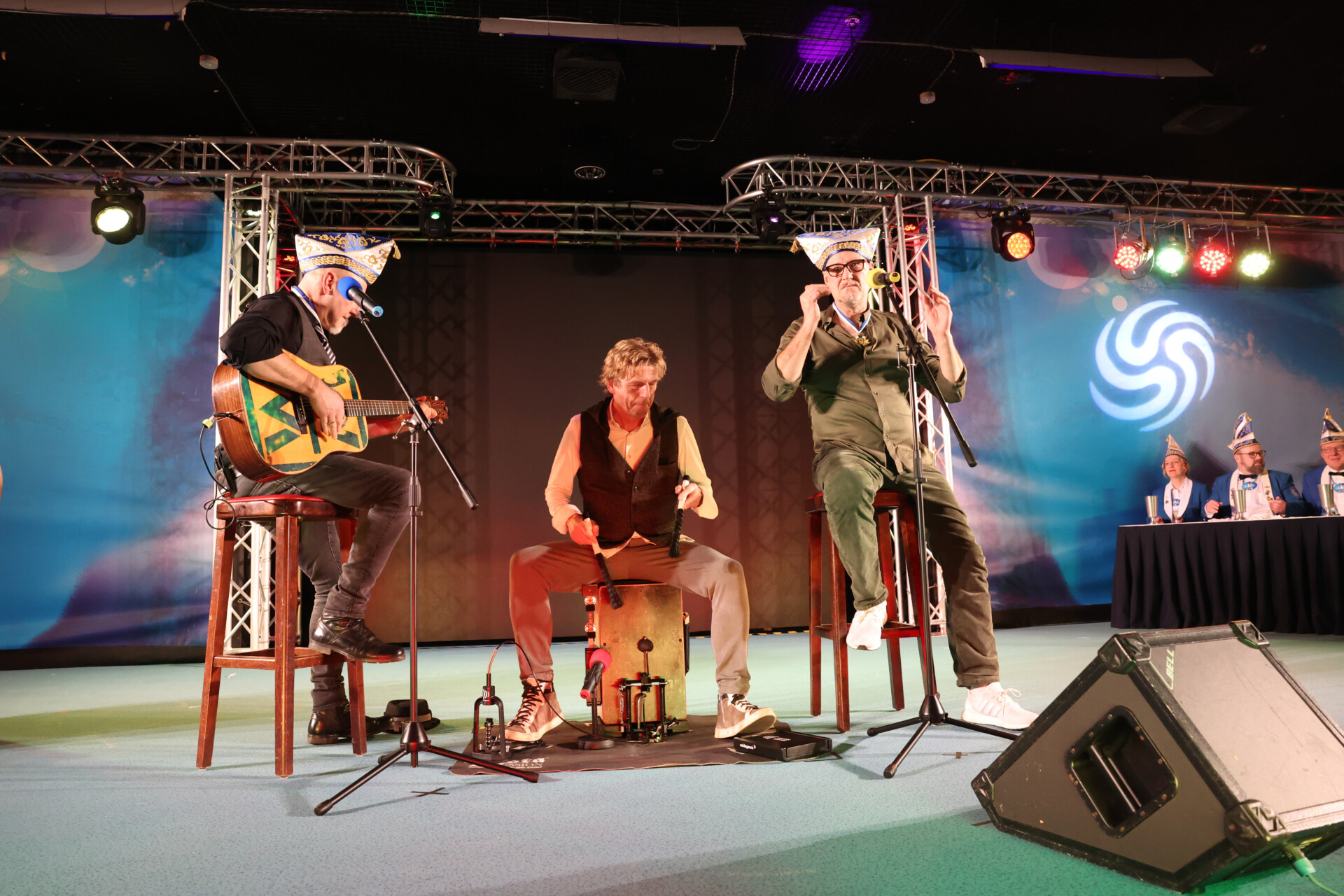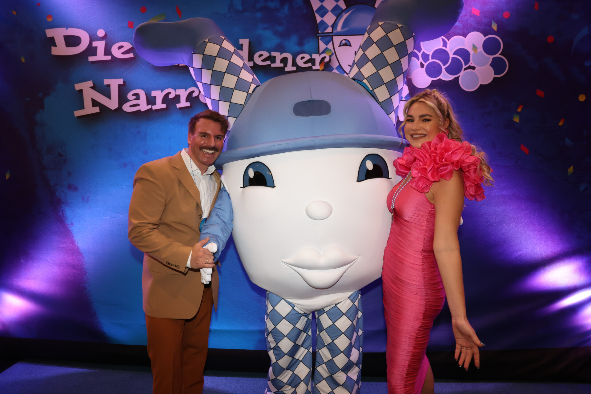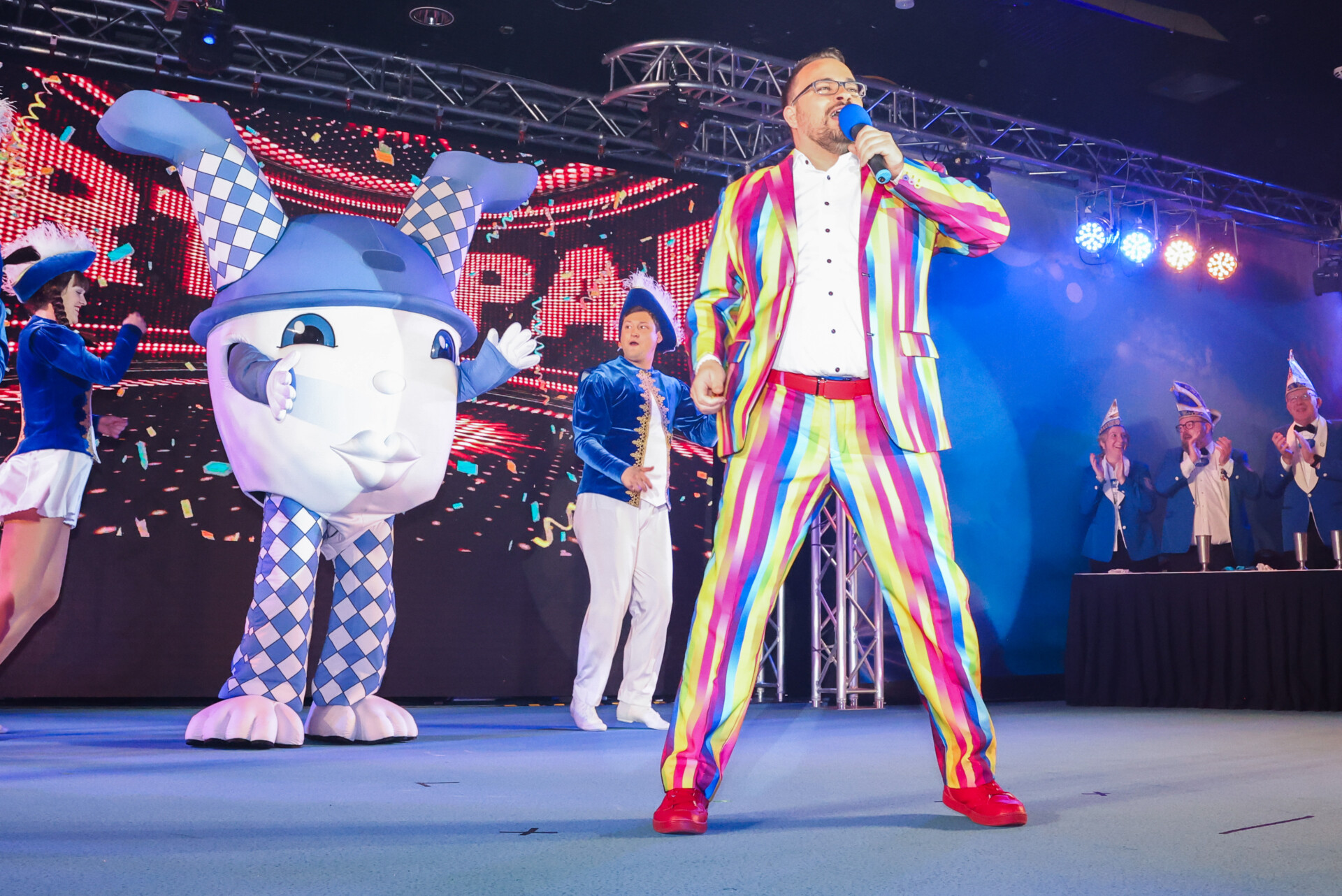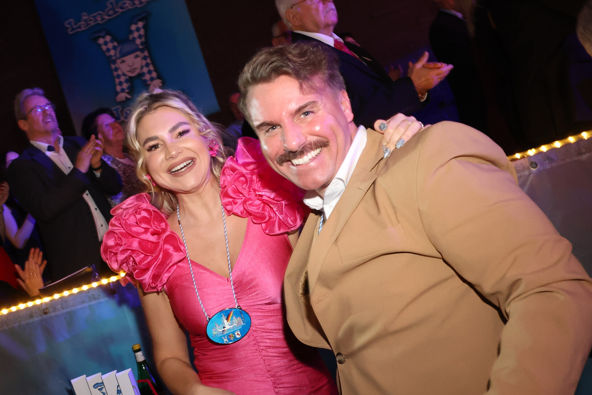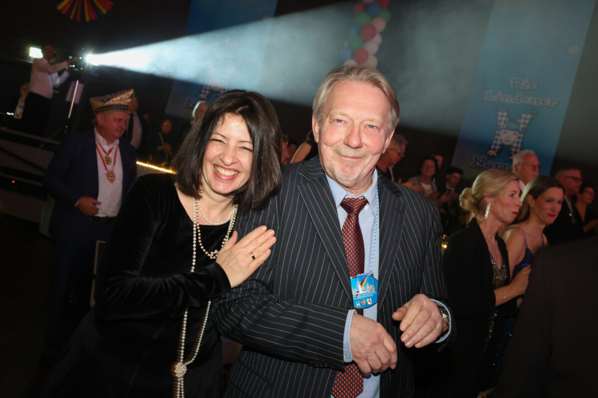 Aber es gab auch Gäste, die zum ersten Mal dabei waren – wie beispielsweise Alexander und Svenja Schreiber oder auch Hanns-Werner und Birte Staude. Sie hielten einen kurzen Schnack schon vor Beginn des Programms – unter anderem mit „Kanzler-DJ“ Michael Gürth, der nach der Gala noch auflegte. Klar, dass es sich auch Comedian Dietmar Wischmeyer nicht nehmen ließ, ohne Treckerfahrer-Outfit mitzuschunkeln. Auf die Frage, warum er hier sei, meinte er: „Meine Frau ist ein absoluter Karnevalsfan!“ Denn auch genau darum ging es: Spaß haben, mitschunkeln und – wie für Narren üblich – durchaus einmal kritisch die Welt zu hinterfragen. Thema war auch die derzeitige politische Situation vor der Bundestagswahl.