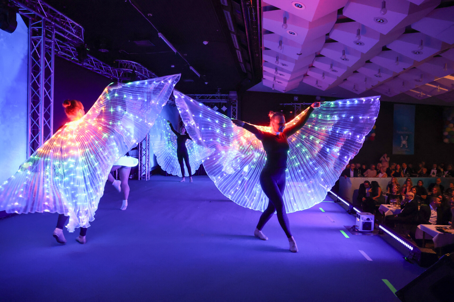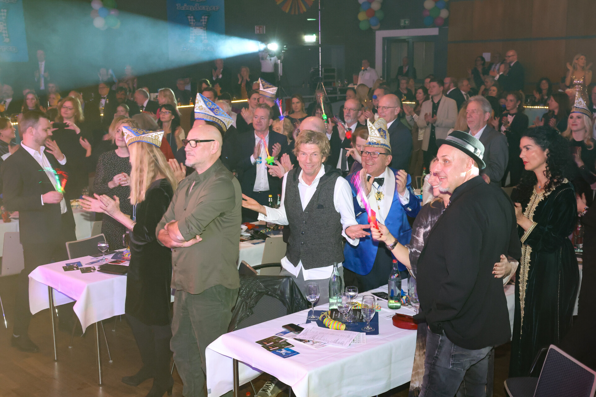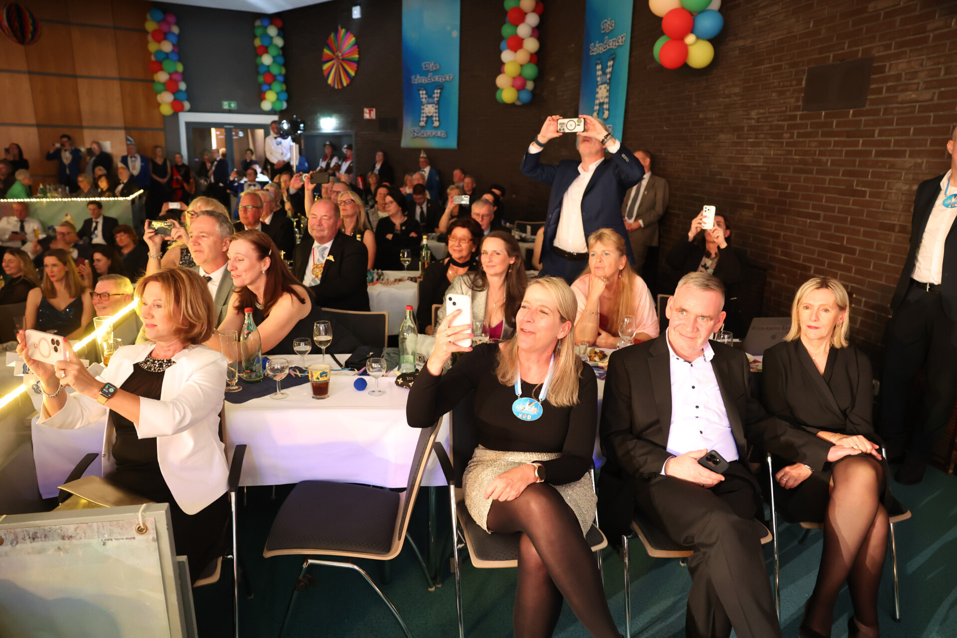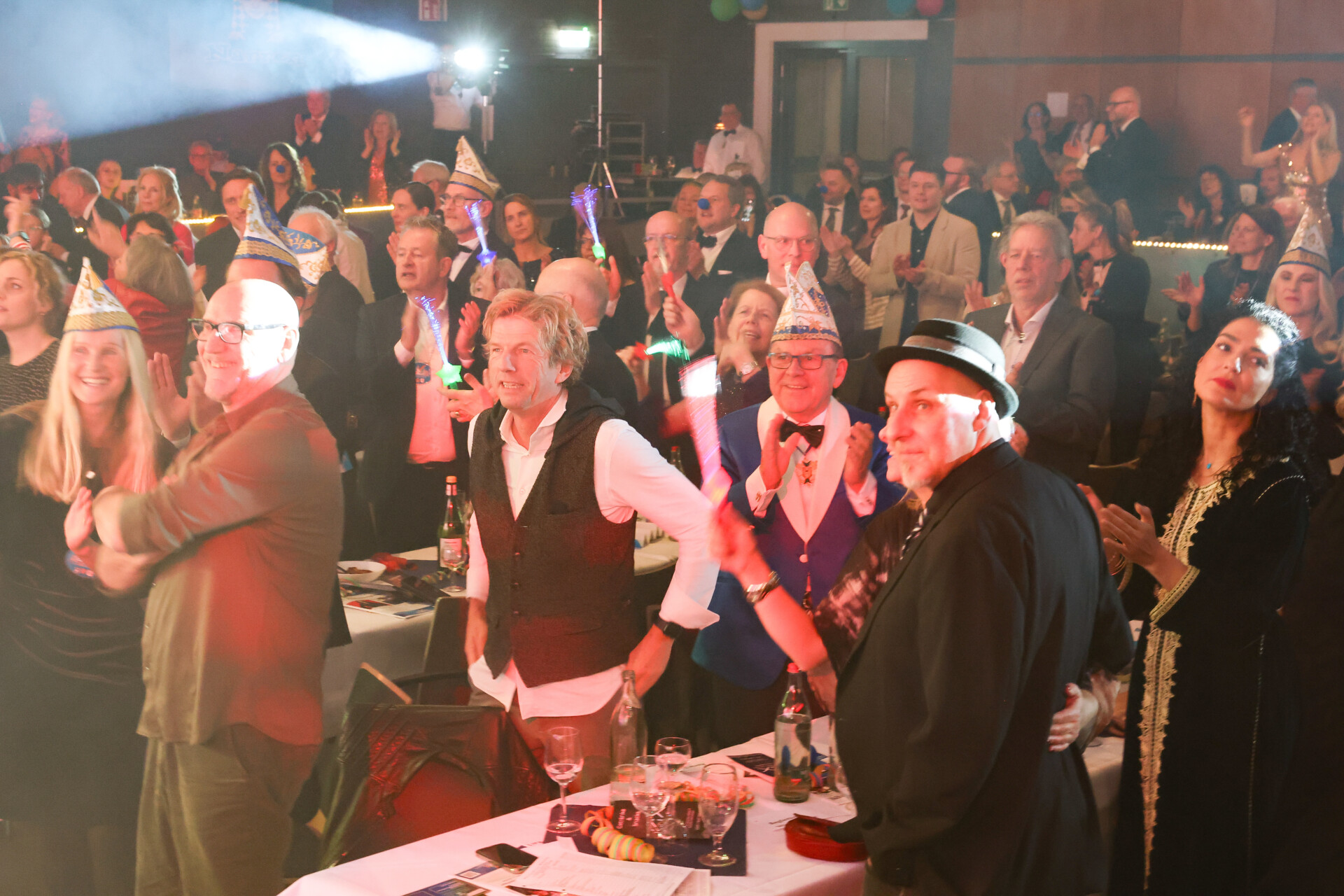 Natürlich hatten sich die Gäste trotzdem in Schale geschmissen. Wie es sich für eine Gala gehört, hatten sie Anzug und Abendkleid gewählt. Ein besonderer Hingucker war das Kleid von Sandra Czok, die in strahlendem Pink kam. Auch Sänger und Stimmungskanone Steven Vroon hatte sich neben dem obligatorischen Konfetti-Anzug noch ein weiteres, regenbogenbuntes Outfit zurechtgelegt, das dank LEDs sogar im Dunkeln leuchtete.