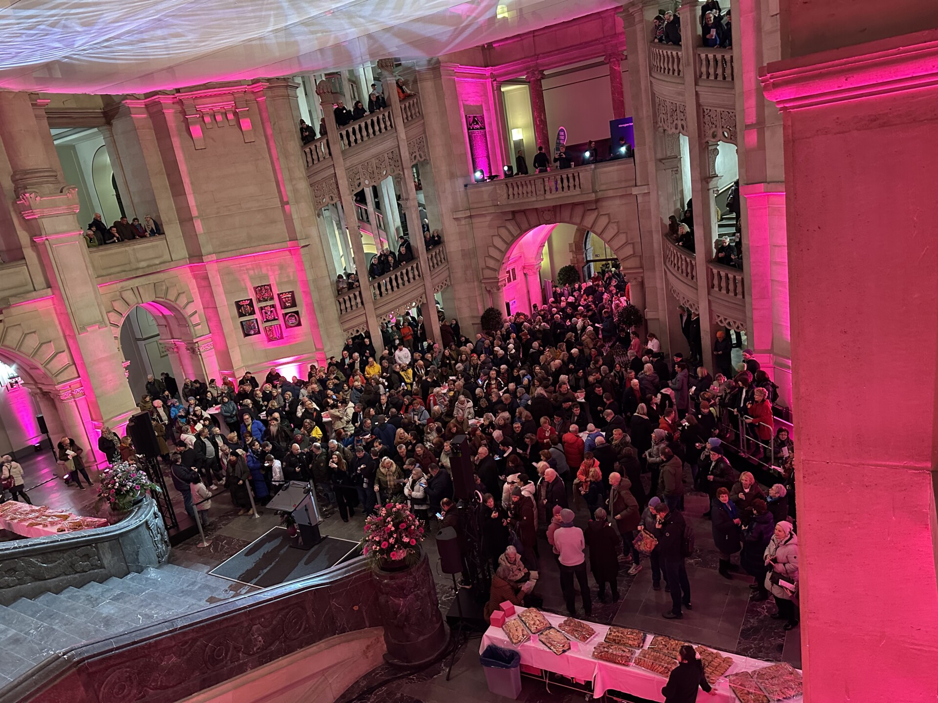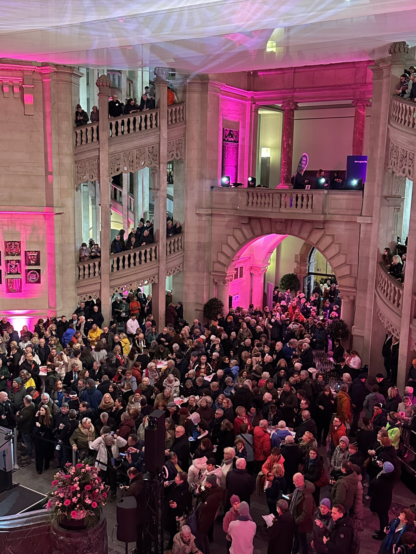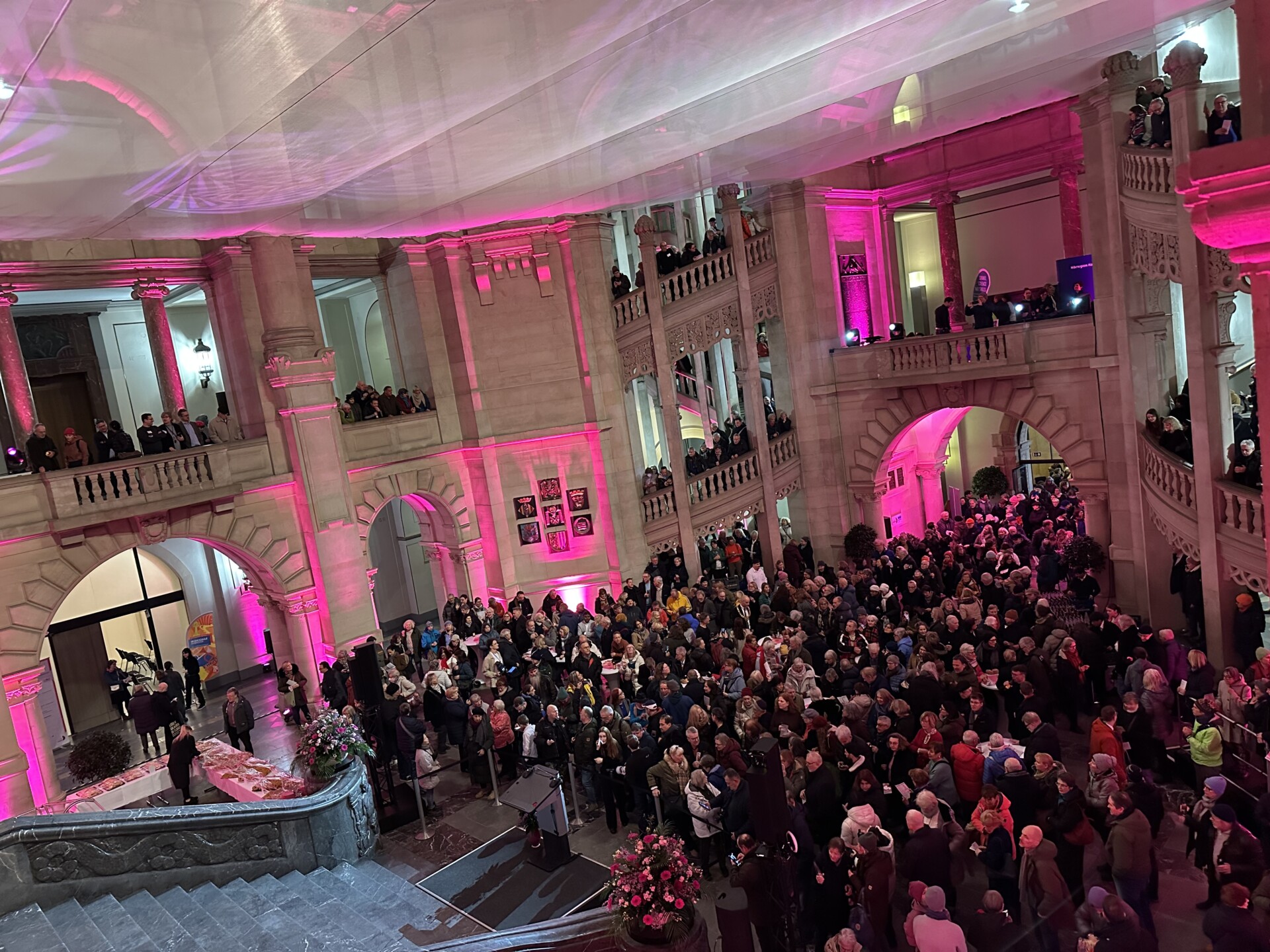 Dass Hannover eine Stadt der Musik ist, wurde bei dem Neujahrsempfang deutlich. Er startete mit einem Flashmob auf dem Rathausportal. Hunderte Bläser der Band „Brazzo Brazzone“ spielten gemeinsam und begrüßten damit die eintreffenden Gäste. Wer es dann ins Rathaus geschafft hatte, staunte nicht schlecht: Alles war pretty in Pink! Ein besonderes Highlight: Während normalerweise nur prominente Gäste auf den Balkon des Rathauses treten dürfen, war es dieses Mal allen Besuchern erlaubt, die direkte Aussicht auf den Platz der Menschenrechte zu genießen.