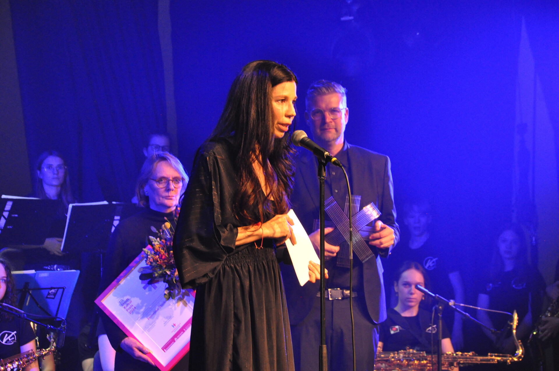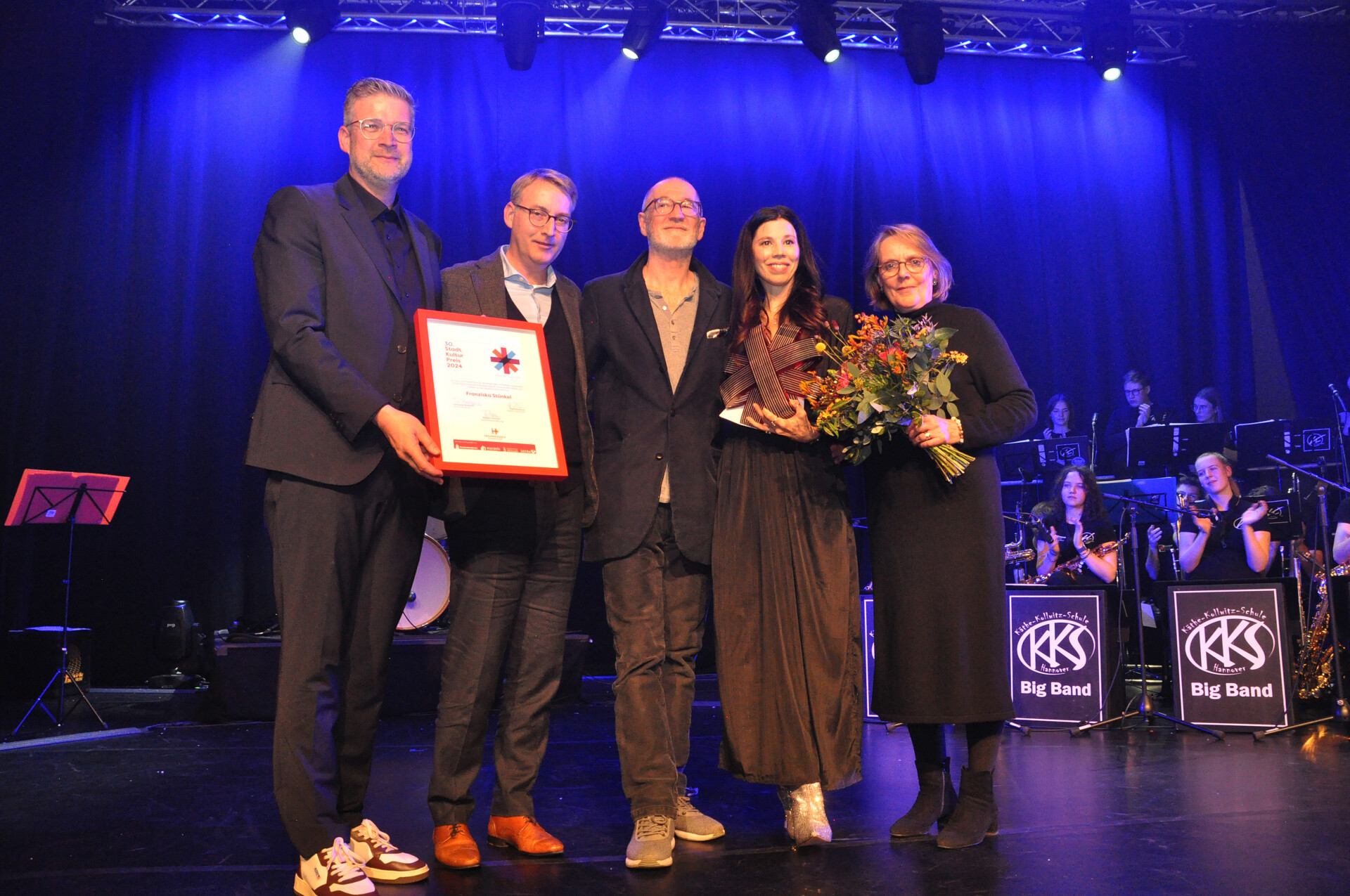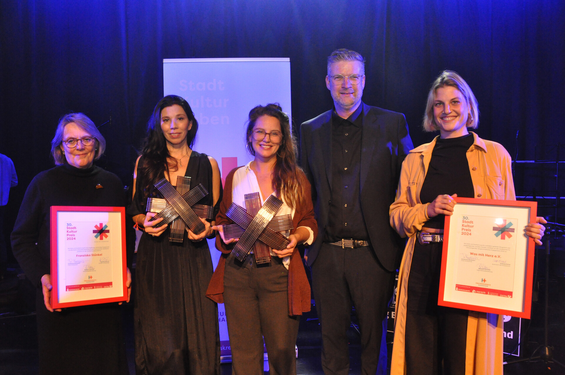 Die so gelobte 51-jährige Künstlerin ist seit 25 Jahren auch vielfältig ehrenamtlich aktiv . Sie setzt sich für den Erhalt der hannoverschen Kulturszene ein. „Ich stehe heute hier stellvertretend für alle ehrenamtlich Tätigen. Denn für mich ist es selbstverständlich, mich zu engagieren. Ich bin mit dem Ehrenamt groß geworden“, so Franziska Stünkel in ihrer Dankesrede. Zugleich appellierte sie, Kultur zu stärken, um miteinander auch zur Stärkung des demokratischen Gedankens ins Gespräch zu kommen. Ihr mit der vom Juweliergeschäft Stichnoth gestifteten Trophäe verbundenes Preisgeld von 5.000 Euro soll deshalb auch einem neuen ehrenamtlichen Projekt zugutekommen.