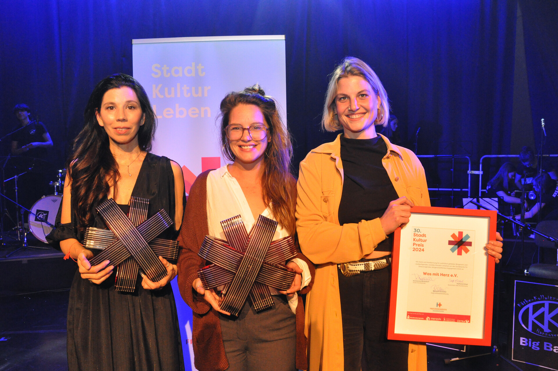 Den 13. Sonderpreis für herausragendes bürgerschaftliches Engagement, vergab der Freundeskreis an den Verein „WASMITHERZ“. „Ich stehe hier stellvertretend für 50 ehrenamtlich Aktive“, bedankte sich dessen Geschäftsführerin und Mitbegründerin Alina Zimmermann. Der seit 2017 in der hannoverschen Nordstadt ansässige Verein hat es sich zur Aufgabe gemacht, kulturelle Vielfalt im Stadtteil und alternative Bildungsangebote zu unterstützen, um Menschen unterschiedlicher Herkunft zusammen zu bringen. „Mit ihrer auch im Verein gelebten Vielfalt der Nordstadt machen sie diese, Hannover und Niedersachsen stärker, heller und besser“, lobte Falko Mohrs, niedersächsischer Minister für Wissenschaft und Kultur, in seiner Laudatio.