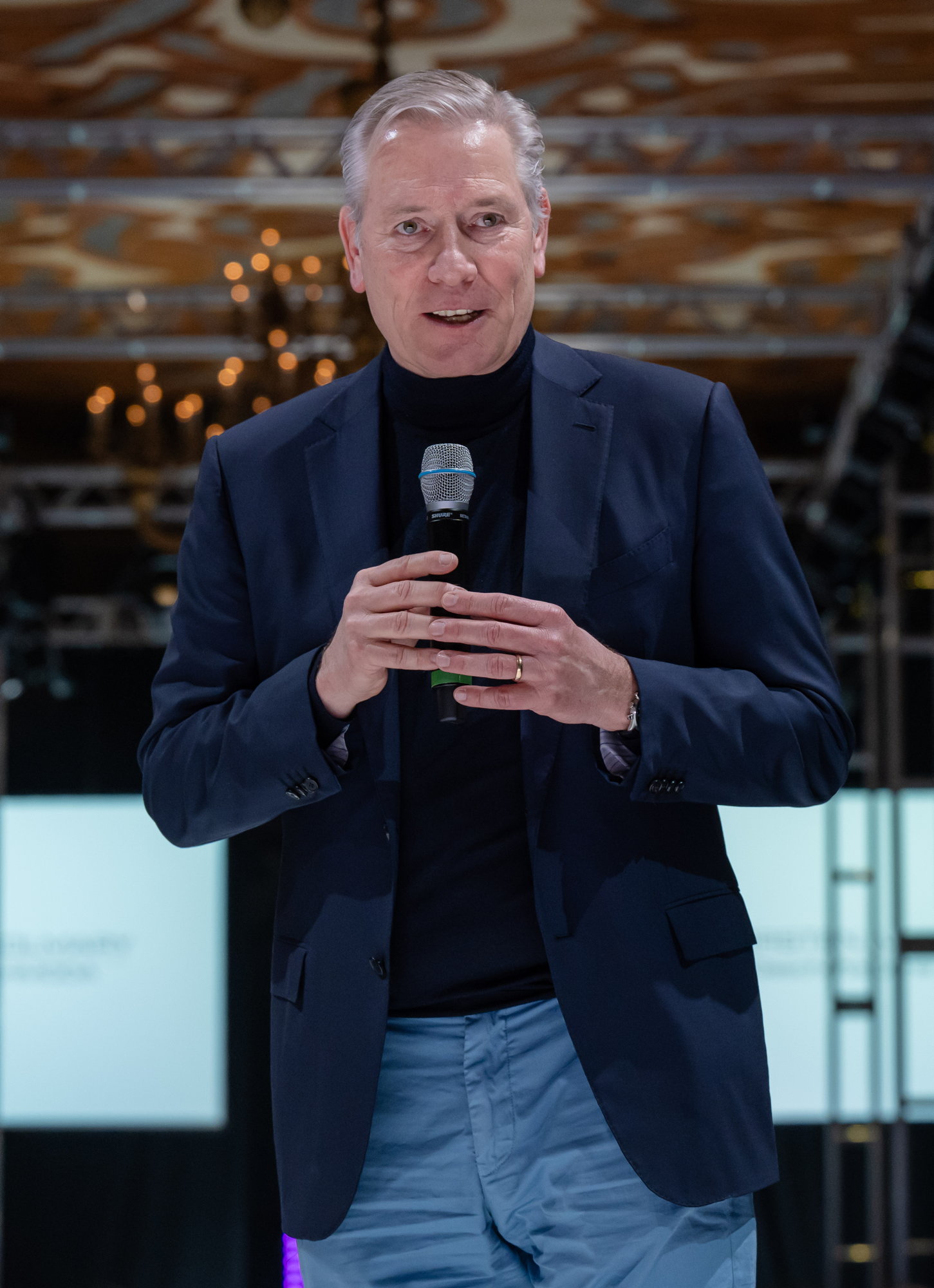 Und wer sich dann im Galeriegebäude umgesehen hat, fand eine Menge Mythologie auch an den Wänden des Raumes selbst. Der ehemalige Gartendirektor der Herrenhäuser Gärten, Ronald Clark, erklärte Moderatorin Luisa Verfürth und dem Publikum, was es mit den Wandmalereien im Galeriegebäude auf sich hat. Dort wird nämlich die Geschichte von Dido und Aeneas erzählt. Sie sind nicht nur kunsthistorisch wertvoll, sondern waren damals auch ein politisches Statement – ebenso wie der ganz besondere Hut, der über der Tür gemalt ist, die zum Großen Garten führt: Der Hut des Kurfürsten ist quasi zum Kleidungsstück gewordener Ausdruck der Macht. Und so war diese Show eine ganz besondere in einem ganz besonderen Ambiente.