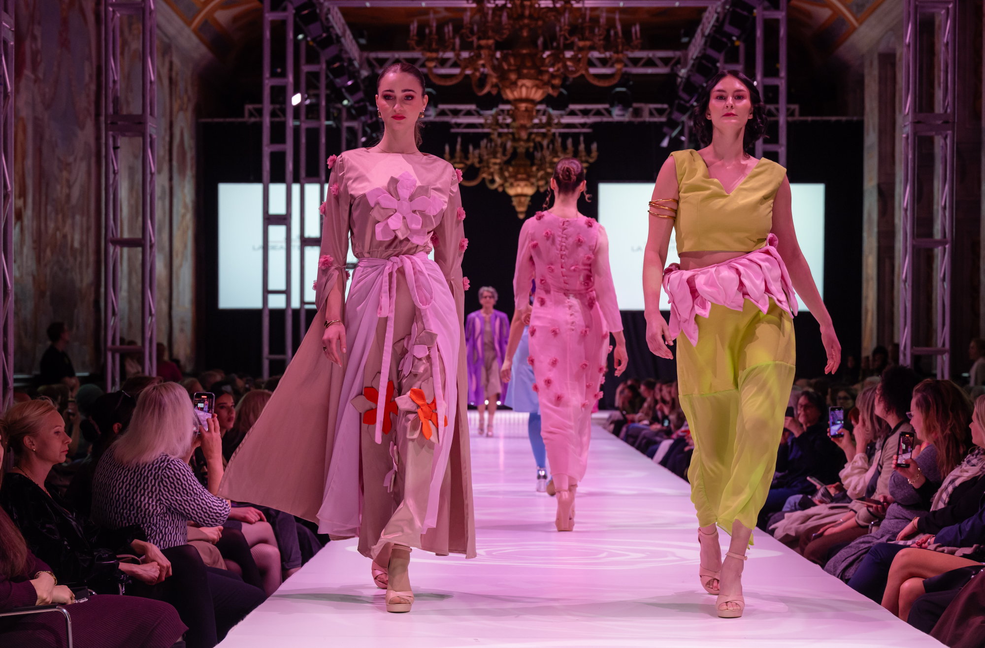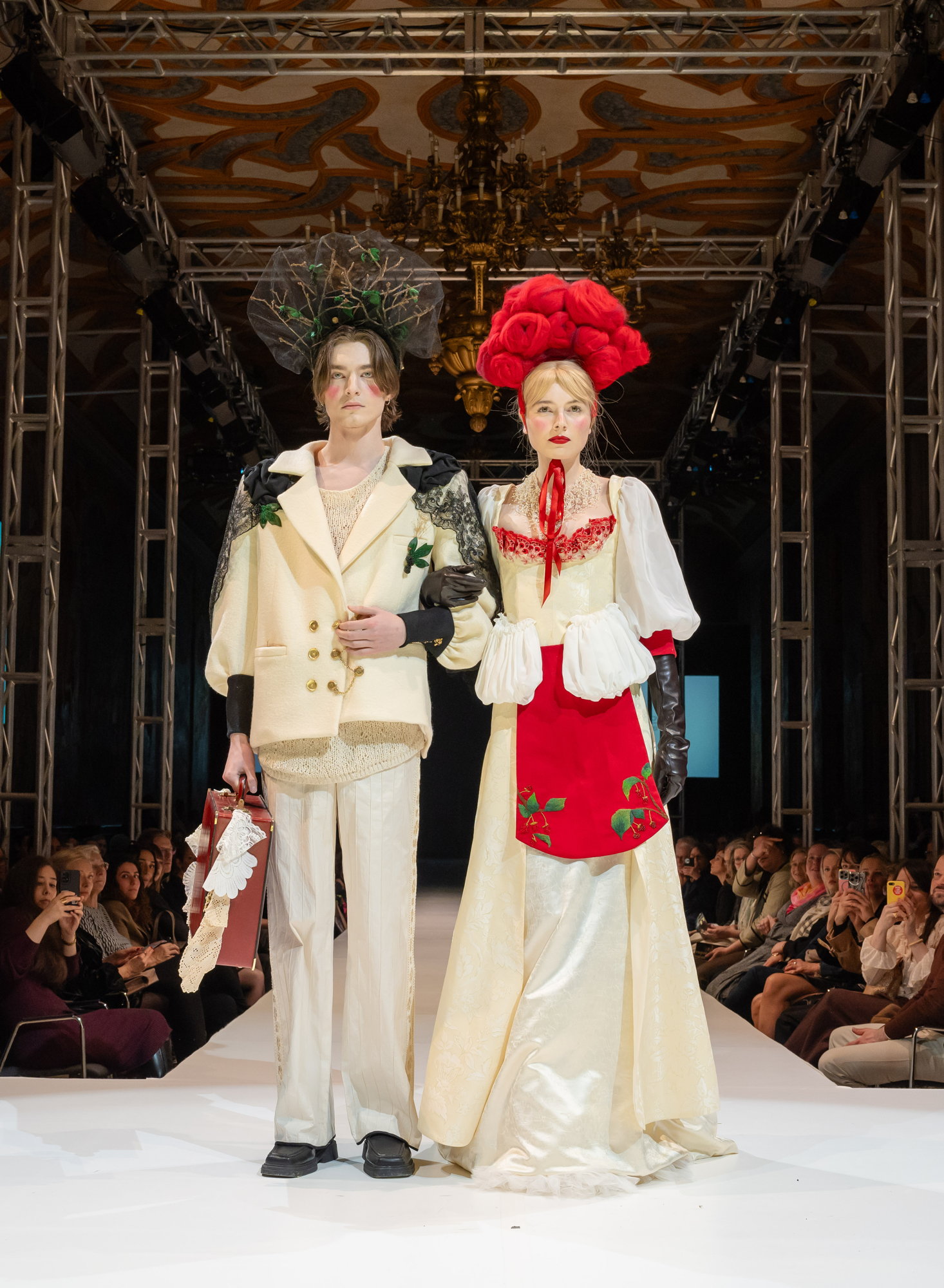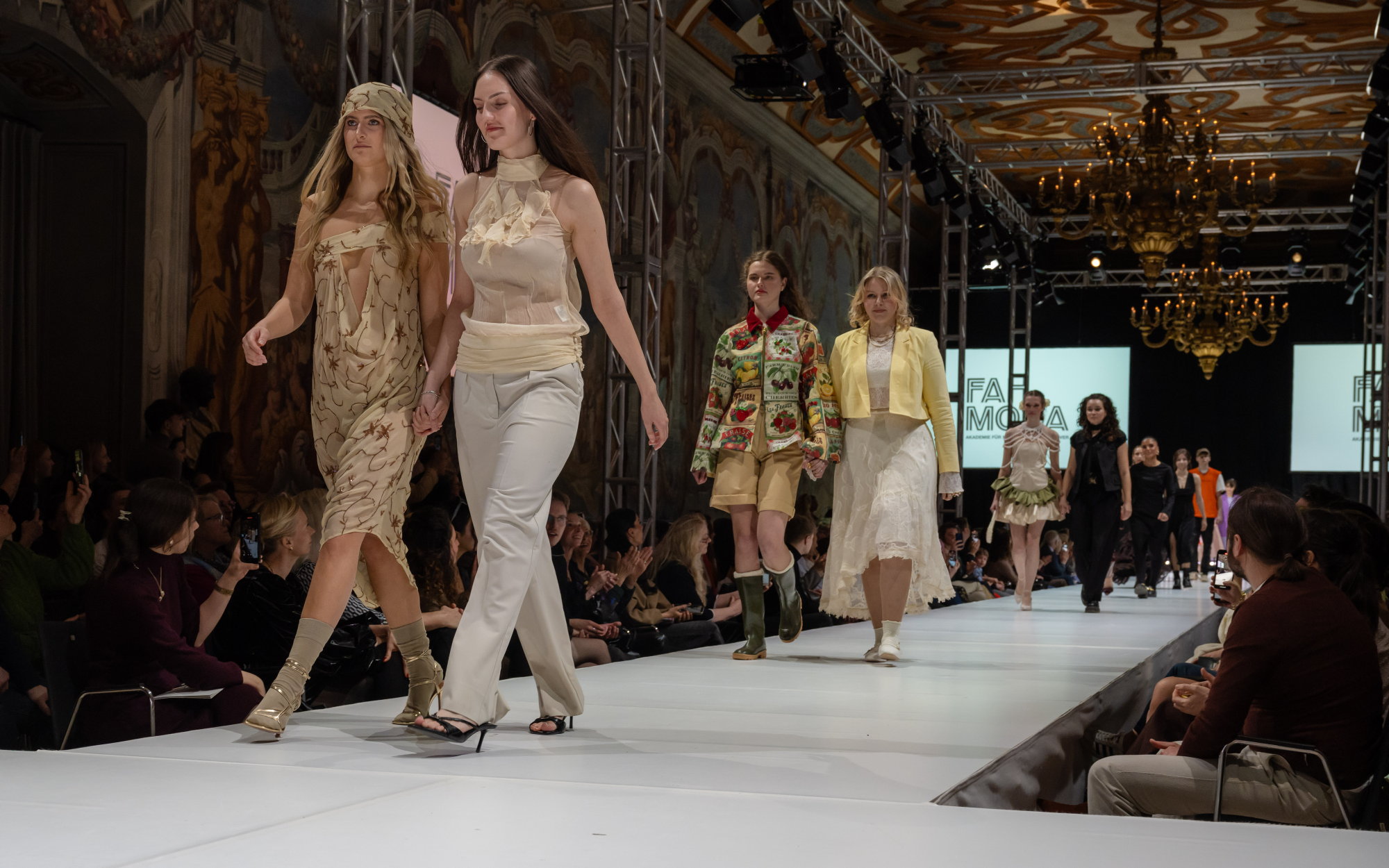 Luxus, Handwerkskunst und ein Hauch von Tradition neu interpretiert: Bei der Fahmoda Show 2025 präsentierten junge Designer ihre Abschlusskollektionen, die Vergangenheit und Moderne miteinander verbinden. Alexandra Bobrowski beeindruckte mit „Rodina Remains“, inspiriert von russischer und slawischer Tradition. Alina Lagemann und Mariesa Plewinski ließen sich von barocken Gärten und heimischem Dorfleben inspirieren. Mathilda Friedrichs fing das Feuer Spaniens mit „Cielo roja“ ein, während Zoe Grätz mit „Mother of Pearl“ Barock-Perlen ehrte. Leonard Giese setzte auf Hip-Hop-Kultur, und Anna Munz sowie Tom Runge überraschten mit Drag-Kollektion und surrealistischen Designs.