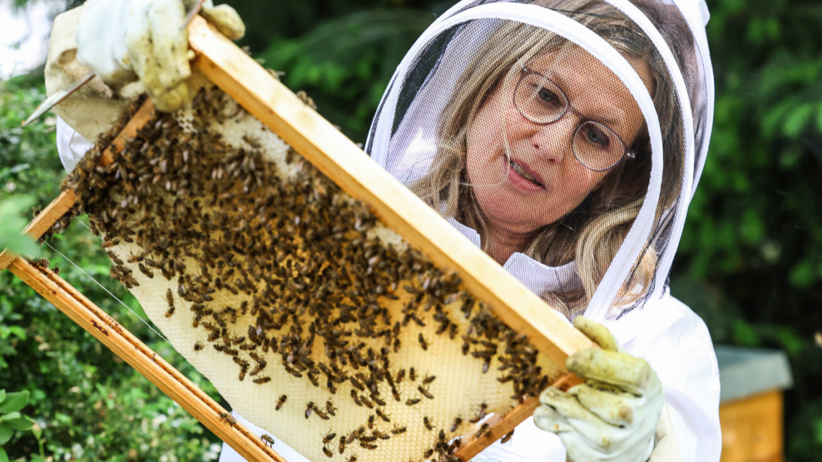 Wiebke Langefeld steht im Garten des niedersächsischen Ministeriums für Ernährung, Landwirtschaft und Verbraucherschutz. Langefeld ist verantwortlich für an die eine Million Mitarbeiter. Denen lässt sie meist freien Lauf, kann sich auf Fleiß und Ordnung verlassen. Bienen muss man schließlich nicht motivieren, die fliegen und sammeln und machen Honig, das Produkt, das die Stadt-Imkerin Wiebke Langefeld so lieben gelernt hat. Hier ist sie im dritten Jahr für drei Bienenvölker verantwortlich, beliefert das Ministerium mit Honig, den die Mitarbeitenden erwerben können. Auch auf dem Dach der Privatbank Warburg kümmert sich Langefeld um einen Bienenvolk. Den Honig verschenken die Mitarbeitenden an ihre Kunden, als Alternative zu Praline und Alkohol. Er hat einen malzig-intensiven Geschmack und die für Hannover typische Mischung aus hauptsächlich Lindenblüten und Edelkastanie.