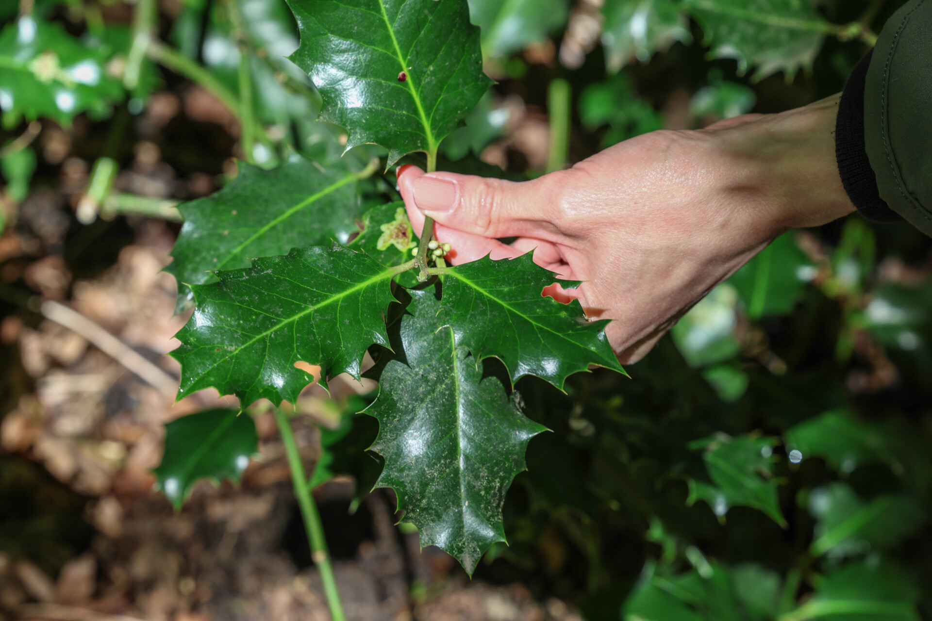 Am Wegesrand erstreckt sich auf einmal ein Meer von grünblättrigen Pflanzen. „Das alles ist Wunderlauch. Man kann ihn sehr gut essen.“ Utech nimmt ein Blatt, knickt es und reibt es leicht gegeneinander. „Riechen Sie gern einmal. Und? Riecht nach Knoblauch, oder?“ Der Wunderlauch wird auch „Berliner Knoblauch“ genannt und wie auch Bärlauch, sein breitblättriger Verwandter, lässt sich Wunderlauch vor allem in der „kalten Küche“ perfekt verwenden – zum Beispiel püriert mit Öl, Nüssen und Parmesan als Pesto. Wunderlauch ist allerdings eine invasive Pflanze und kommt eigentlich aus der Kaukasusregion. Sie wächst und gedeiht in Mitteleuropa prächtig und ist in der Eilenriede in Massen zu finden. „Den Wunderlauch gern abschneiden, mitnehmen und essen, er ist fast zu einer Plage geworden“, sagt die Waldführerin.