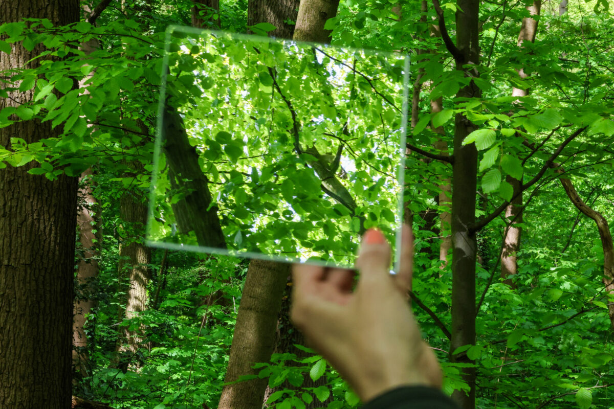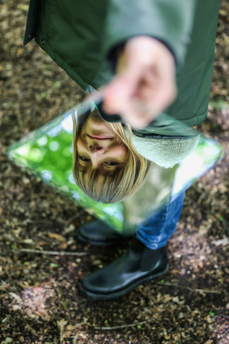 Utech holt eine Spiegelkachel aus ihrem Rucksack. Solche Experimente macht die Waldführerin gern mit ihren Teilnehmern. „Einfach mal die Perspektive wechseln.“ Wie selten schaut man auch hoch in die wunderschönen Baumkronen.