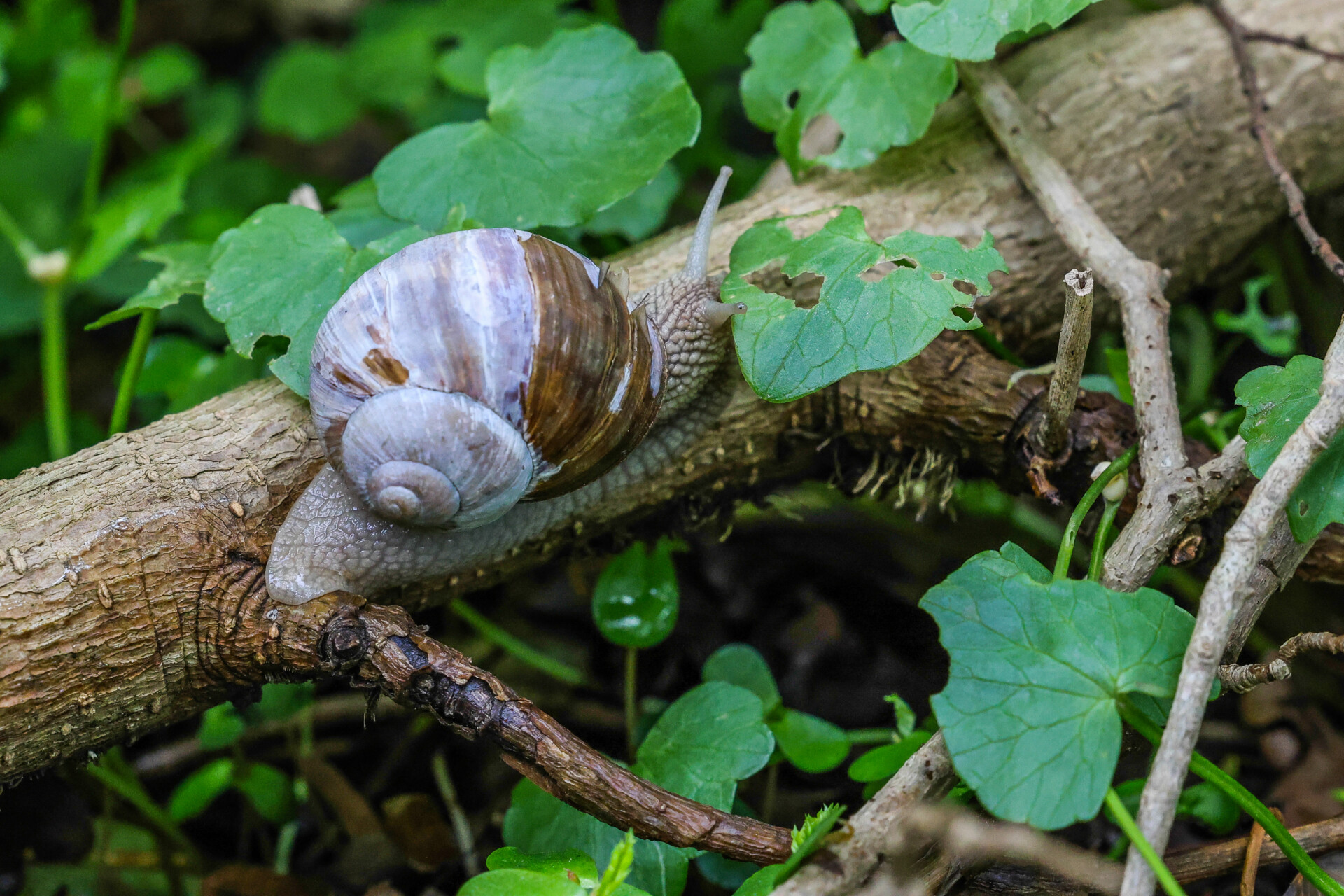 Passend zum Thema Kulinarik entdecken wir mehrere Weinbergschnecken. Durch den Regen haben sie sich herausgetraut. „Lust auf einen Waldheidelbeer-Schnaps?“, fragt Utech. „Ist auch ohne Alkohol.“ Während wir ihn trinken, fällt mir ein Baum auf, aus dessen „Augen“ ganz viele kleine Äste austreiben. „Das sind Angstäste“, erklärt die Waldführerin. So etwas mache ein Baum, wenn es ihm nicht gut ginge. „Wenn man nach oben in die Baumkrone schaut, dann wird man sehen, dass dieser Baum nicht gesund ist“, sagt sie: „Weil er merkt, dass etwas nicht stimmt, treibt er verzweifelt kleine Äste aus, um gegen sein Sterben anzugehen, leider oft ohne Erfolg.“