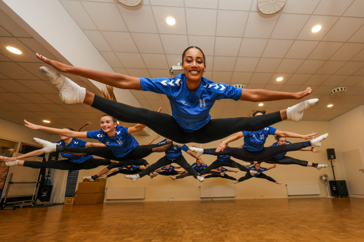 auf Synchronität und das Erreichen perfekter Linien geachtet. Hier treffen Akrobatikelemente auf Ballett- und